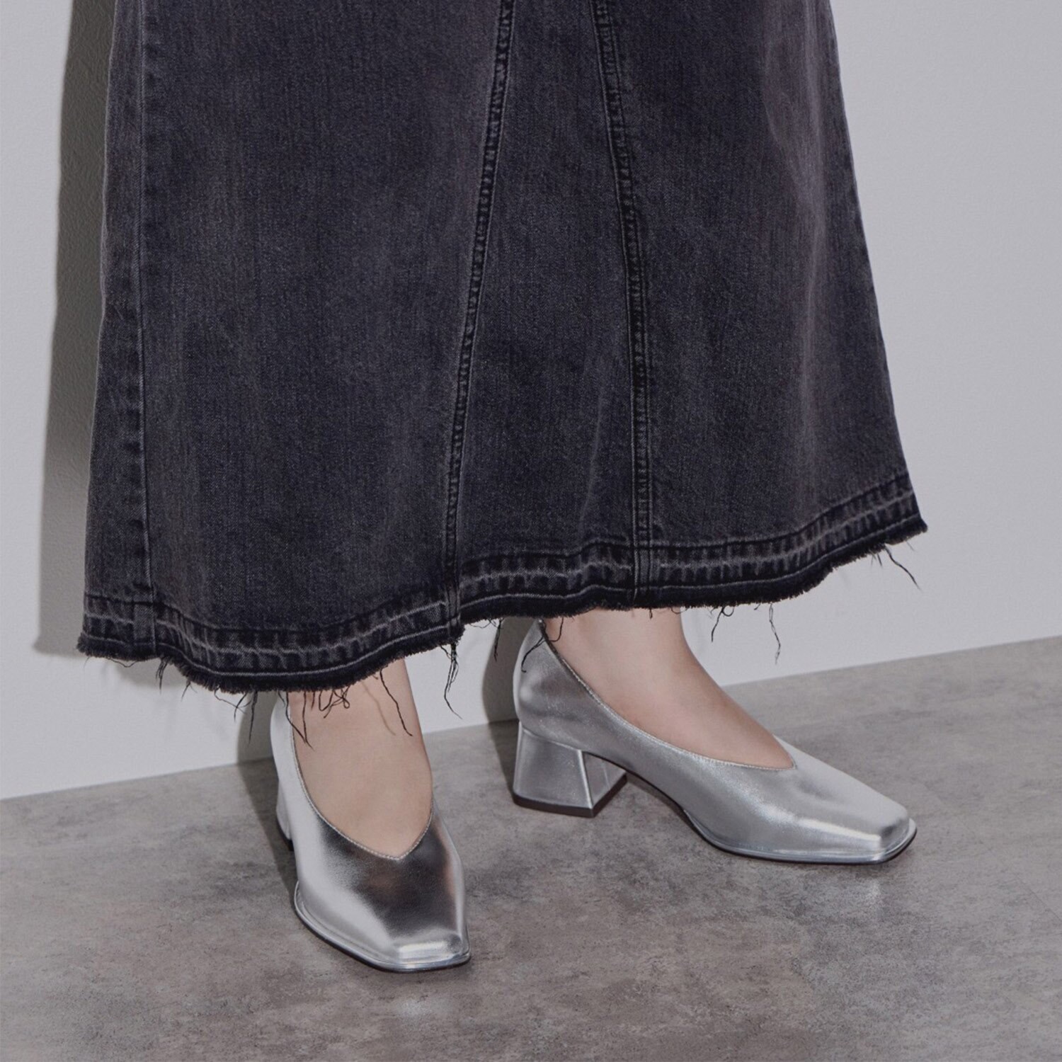 ラウンドスクエアトゥがこなれた装いを演出します。