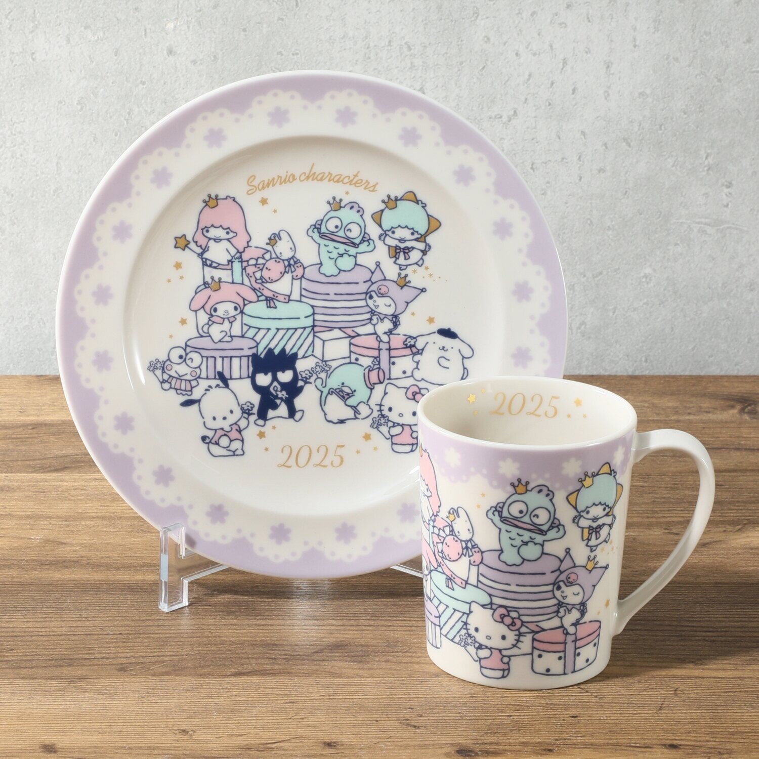 プレゼントに乗っている周年キャラクターを、みんながお祝いしているデザインが愛らしいイヤーズプレート。