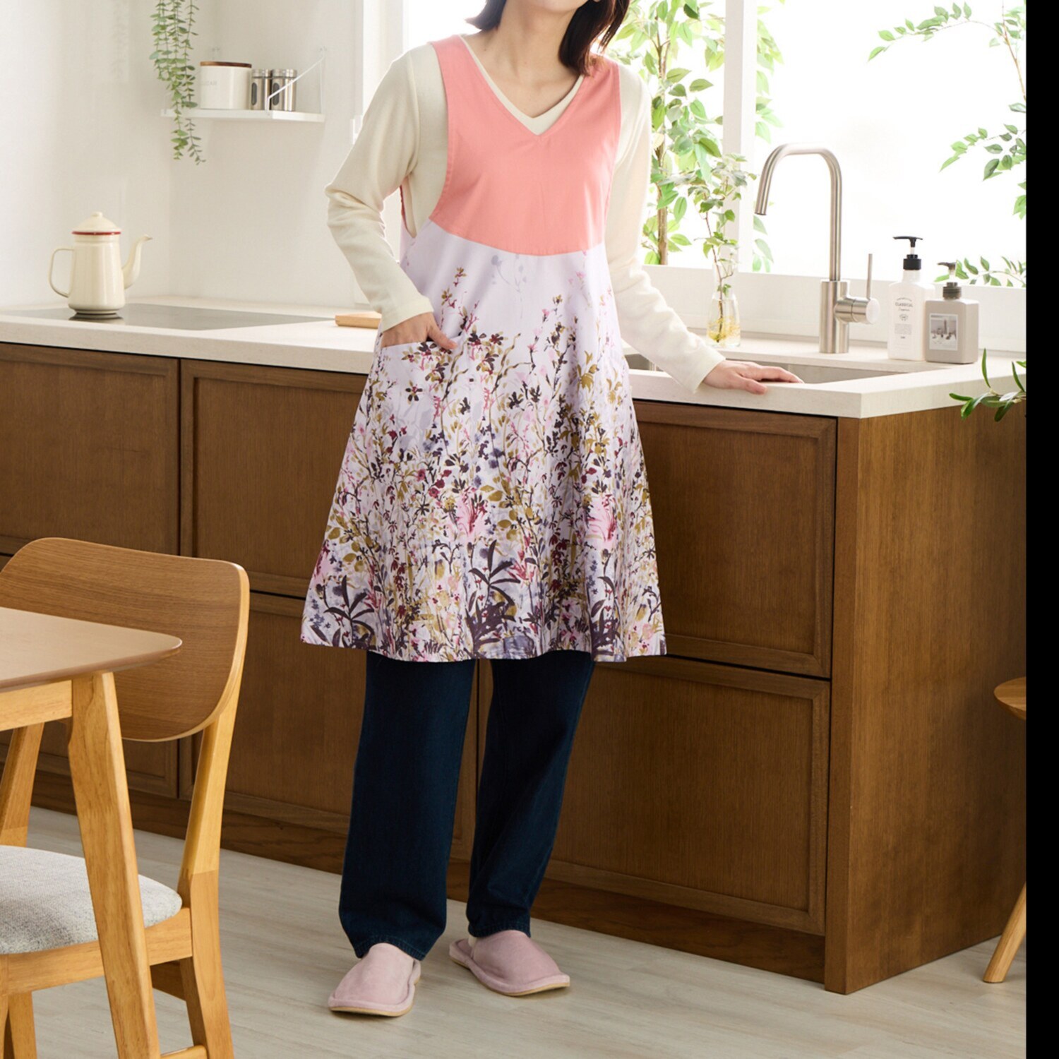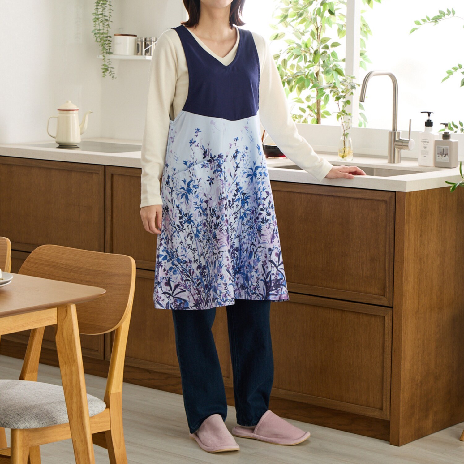 ご自宅でのワークウエアをスタイリッシュに演出し、日々の家事を楽しくしてくれる一枚です。