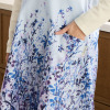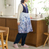 繊細なパネルプリントが美しい、無地切替エプロン! Vネック&後ろの腰ひもで、すっきり着こなせる♪