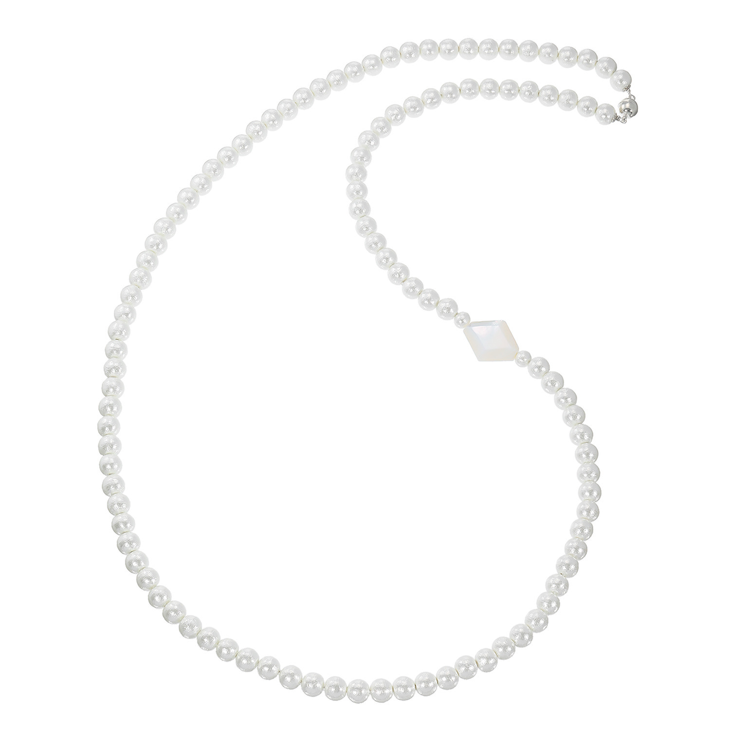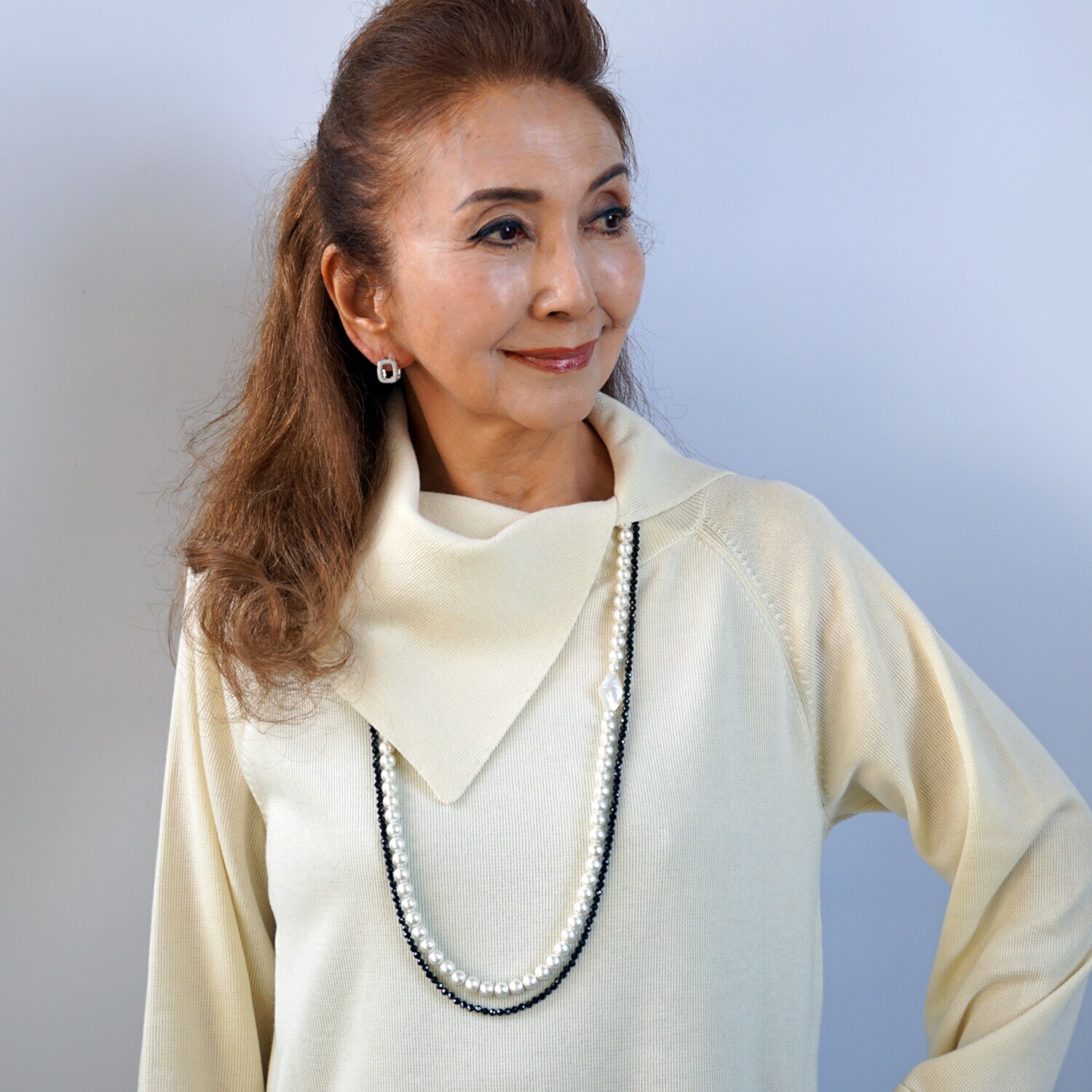 マダムヒロコ コットンパール&白蝶貝 ワンポイントデザイン ロングネックレス “シャインパール”