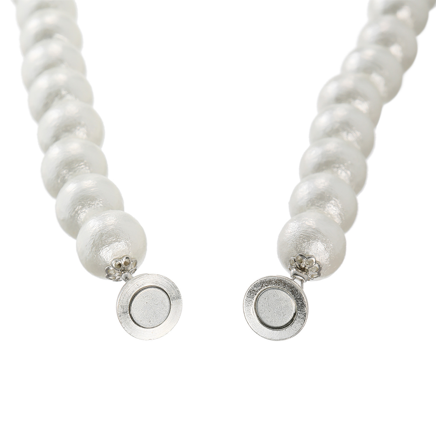 ちょっと胸元が寂しいとき用にパールのネックレスを探していました。こちらの商品はとても軽く二重にしても簡単にマグネットで着脱出来るので使いやすいです。白蝶貝もアクセントになり素敵です。コットンパールなのでとても軽く、普段使いからちょっとした食事会で活躍してくれそう!