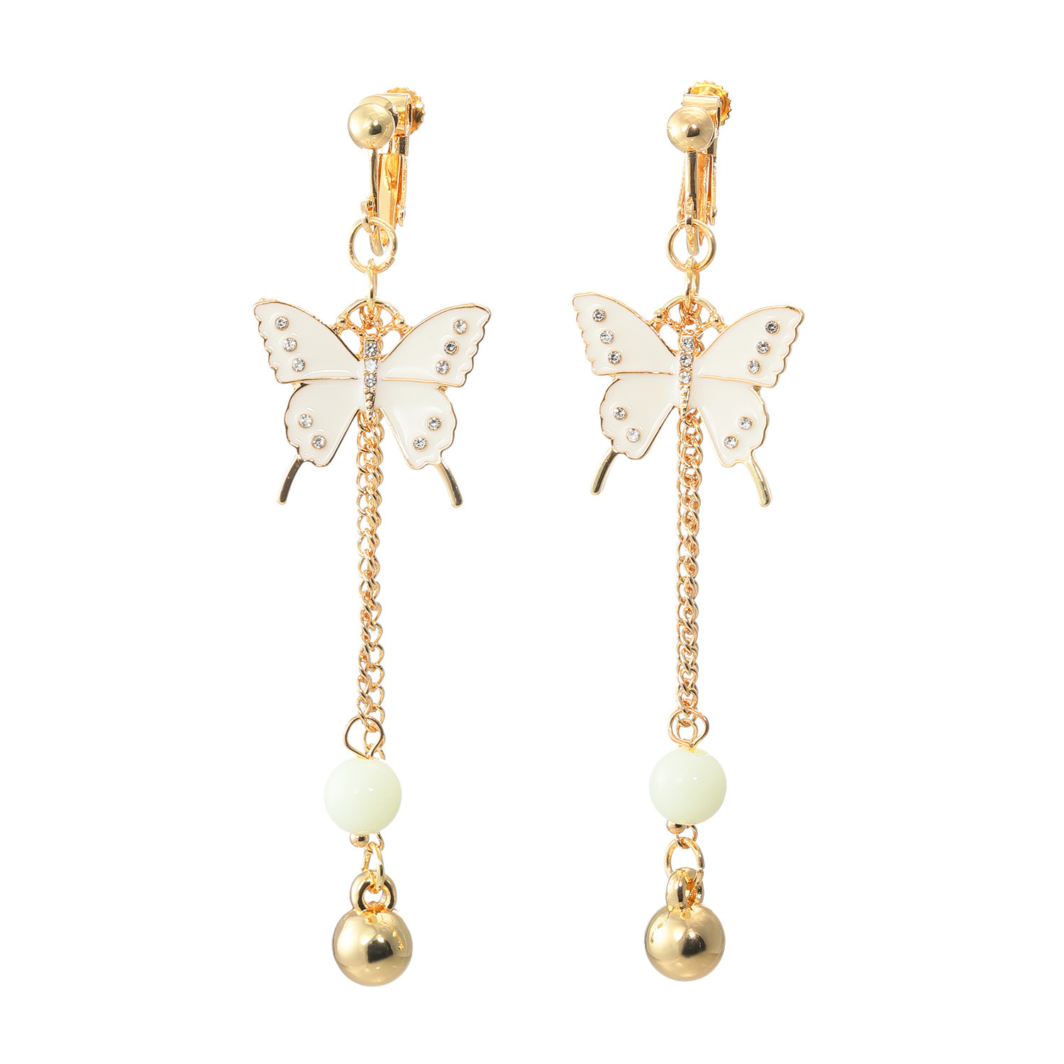ラインストーンがきらりと光る、バタフライモティーフが大人かわいいデザインのイヤリングです。