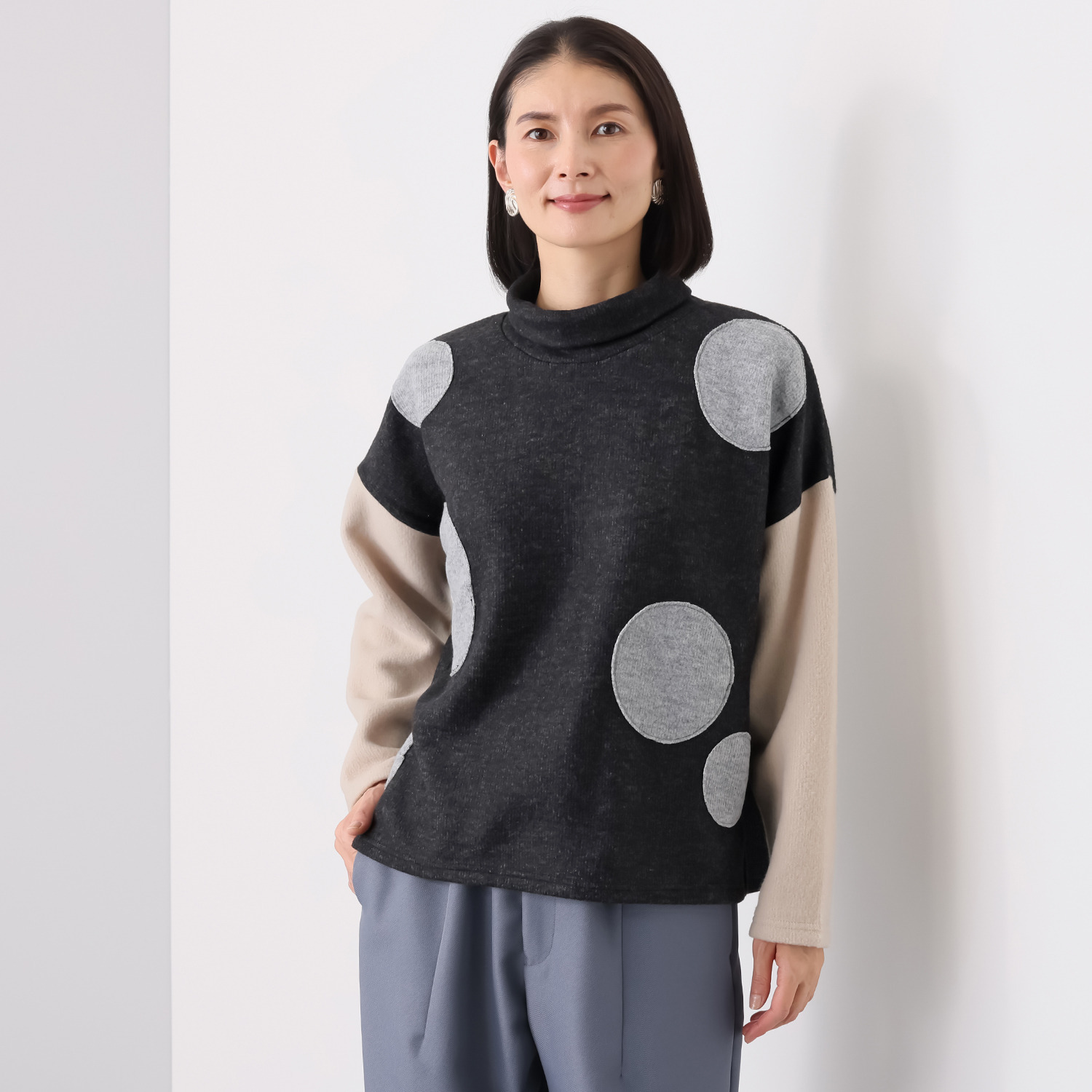 ゆったりとしたハイネックデザインで、首元の締めつけ感が少なく、タートルネックが苦手な方でも快適に着用できます。