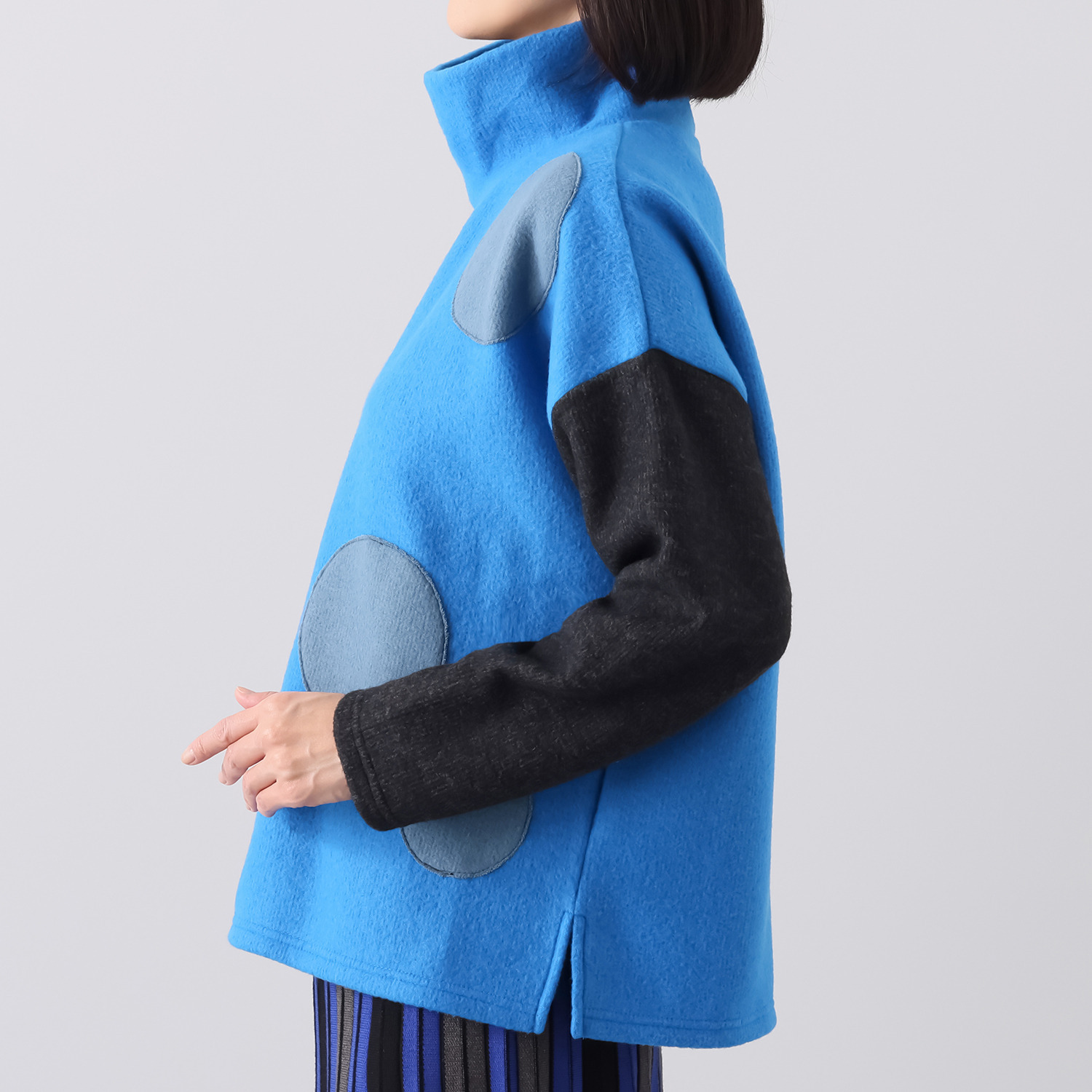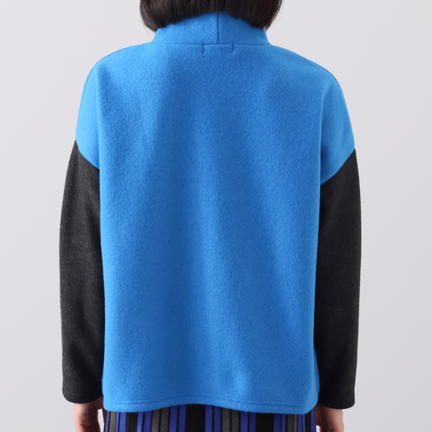 袖部分の配色切り替えがデザインにメリハリを加え、個性的な印象を与えます。