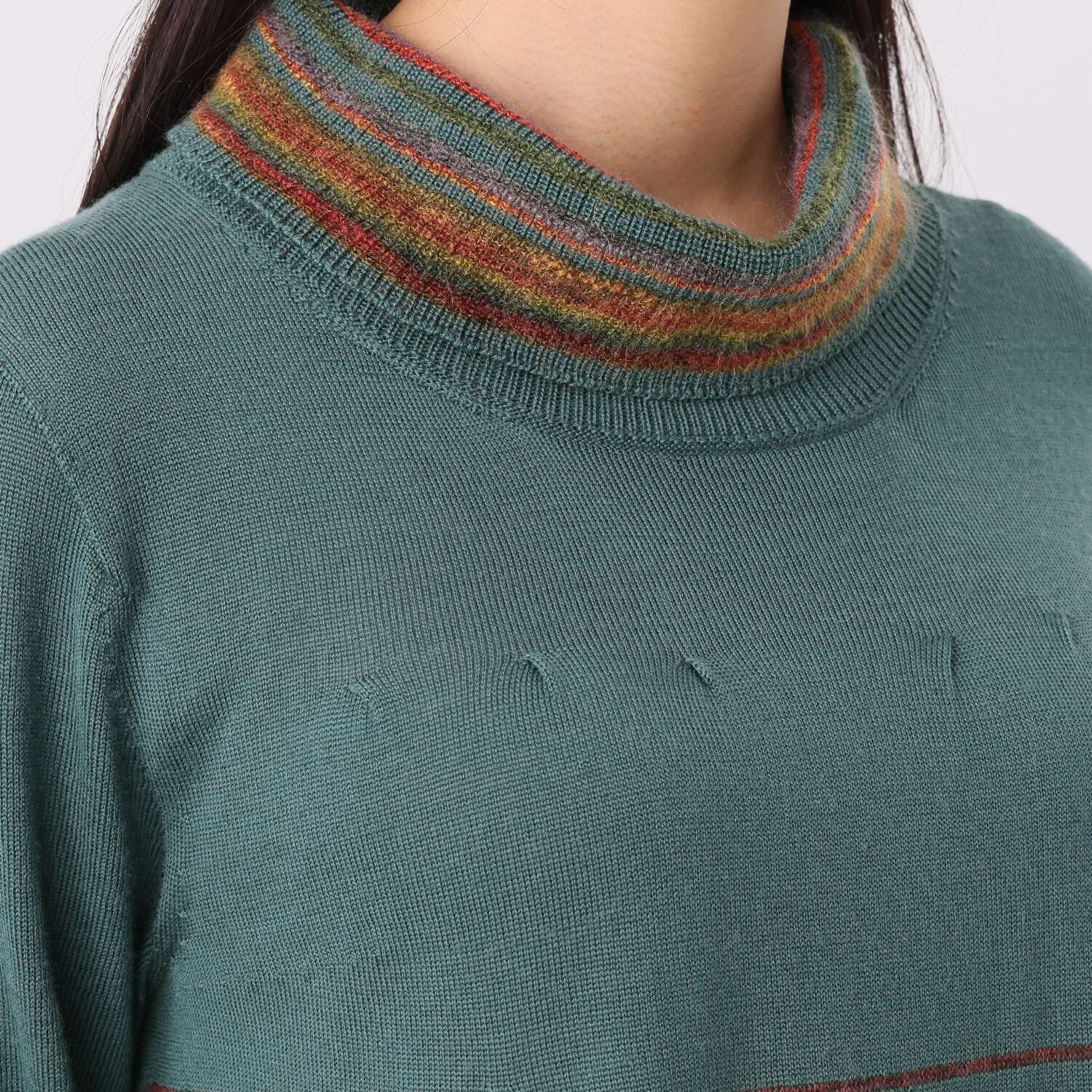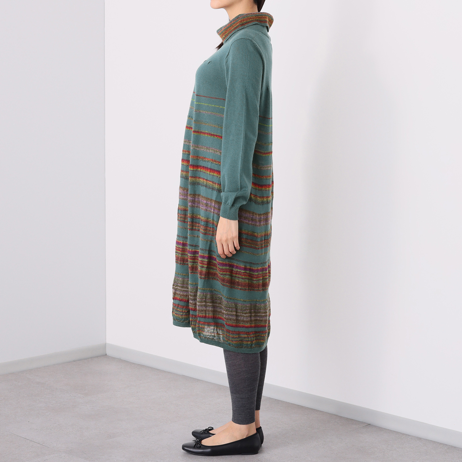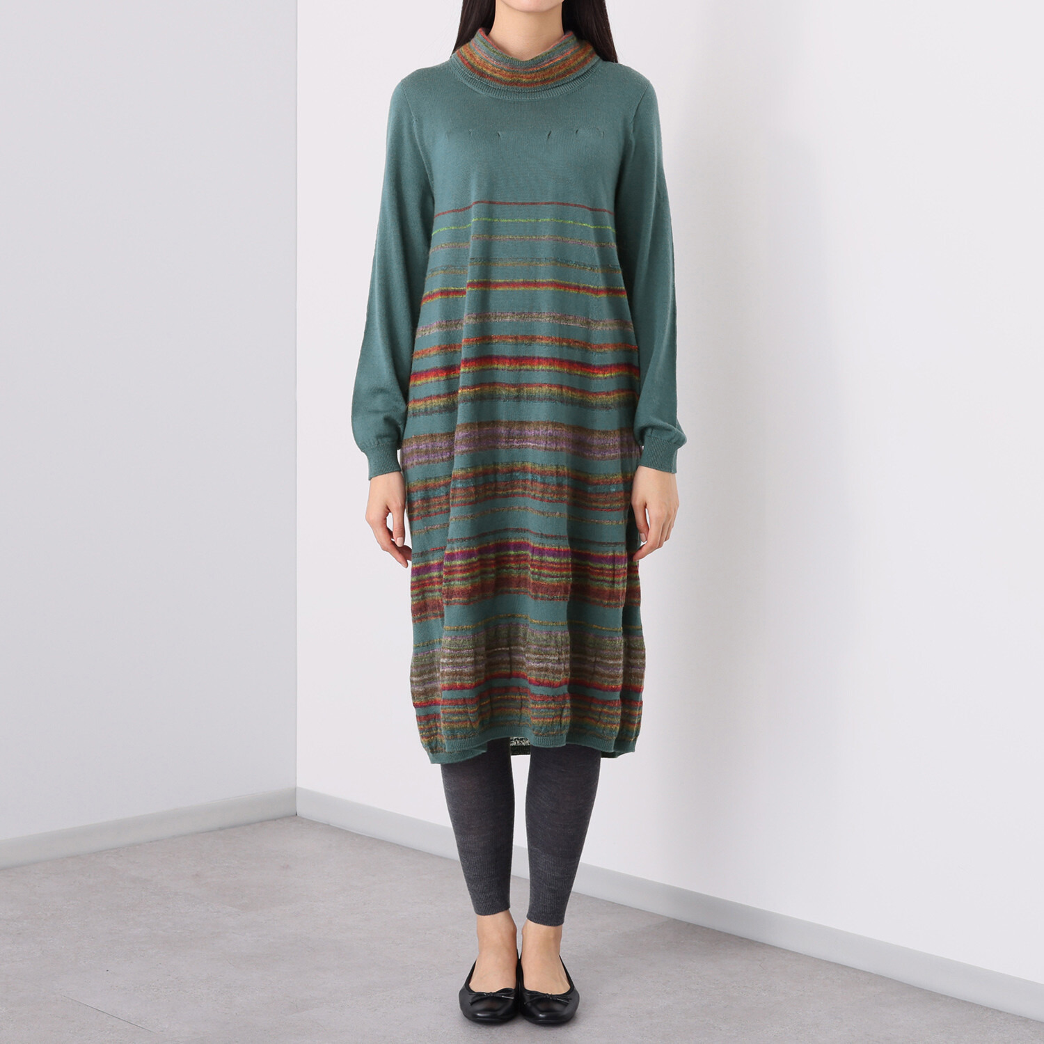 ニットは体型を拾うのでけいえんしていました。今回は配色がステキだったので悩んだ末に購入しました。