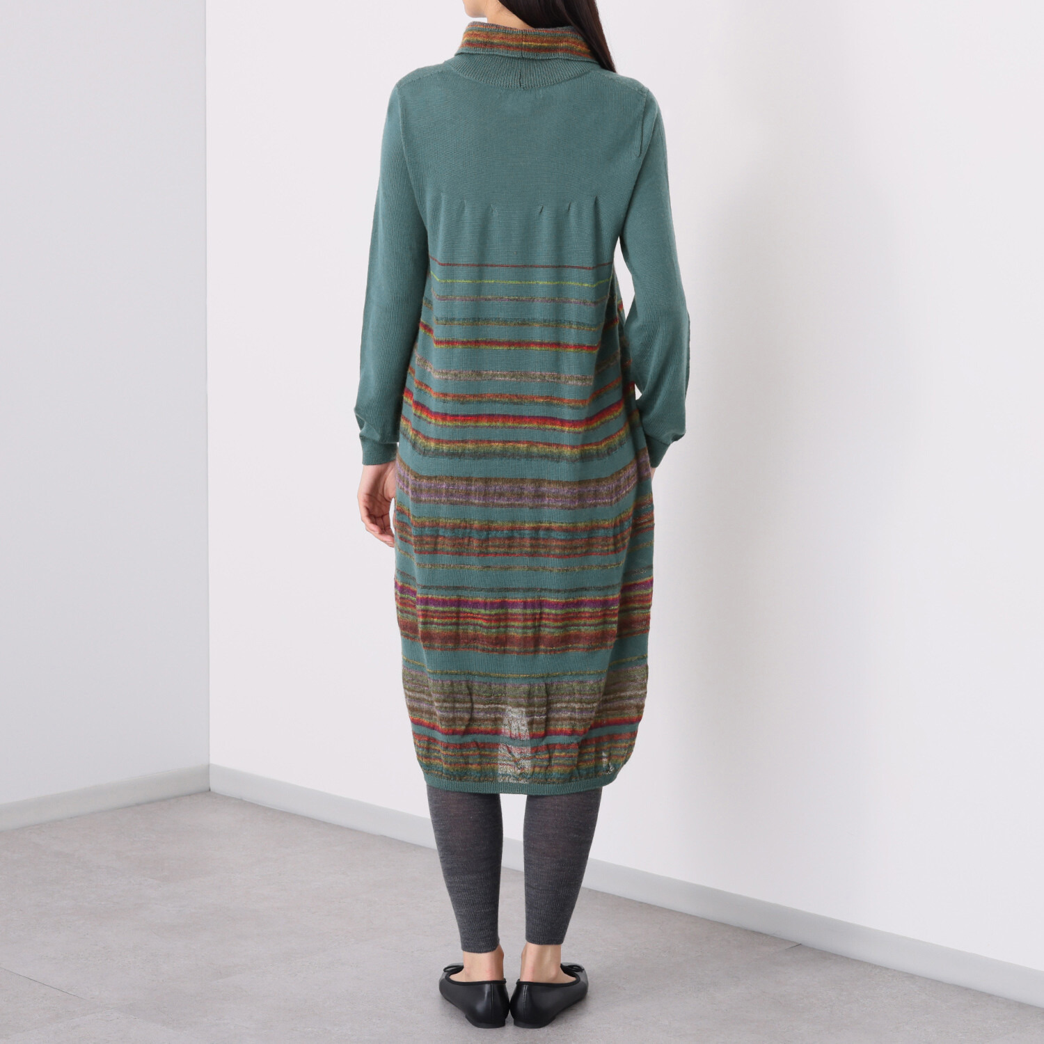 ワンピースとしては短く、下にスカートやパンツを履いても、コクーンシルエットなので難しく、私には着こなせないでした。