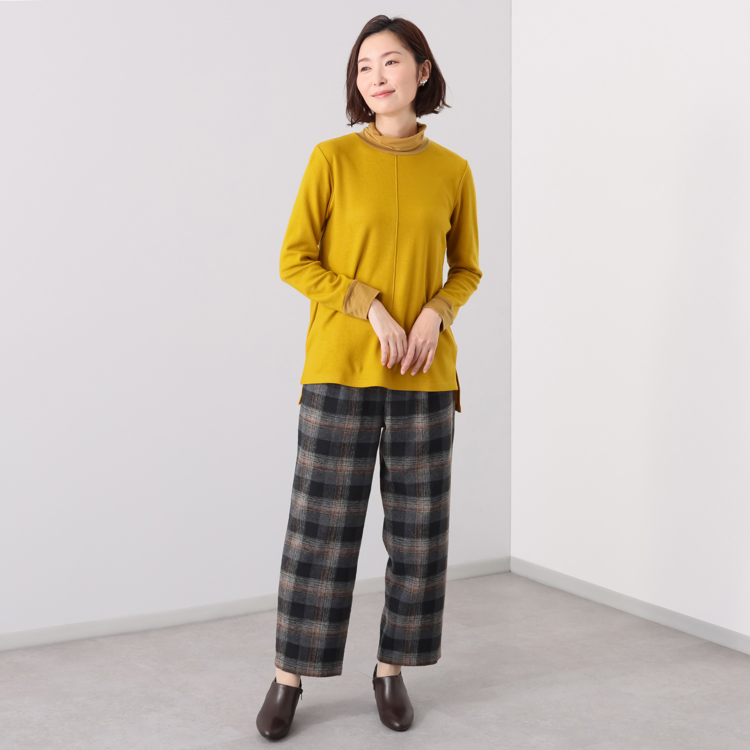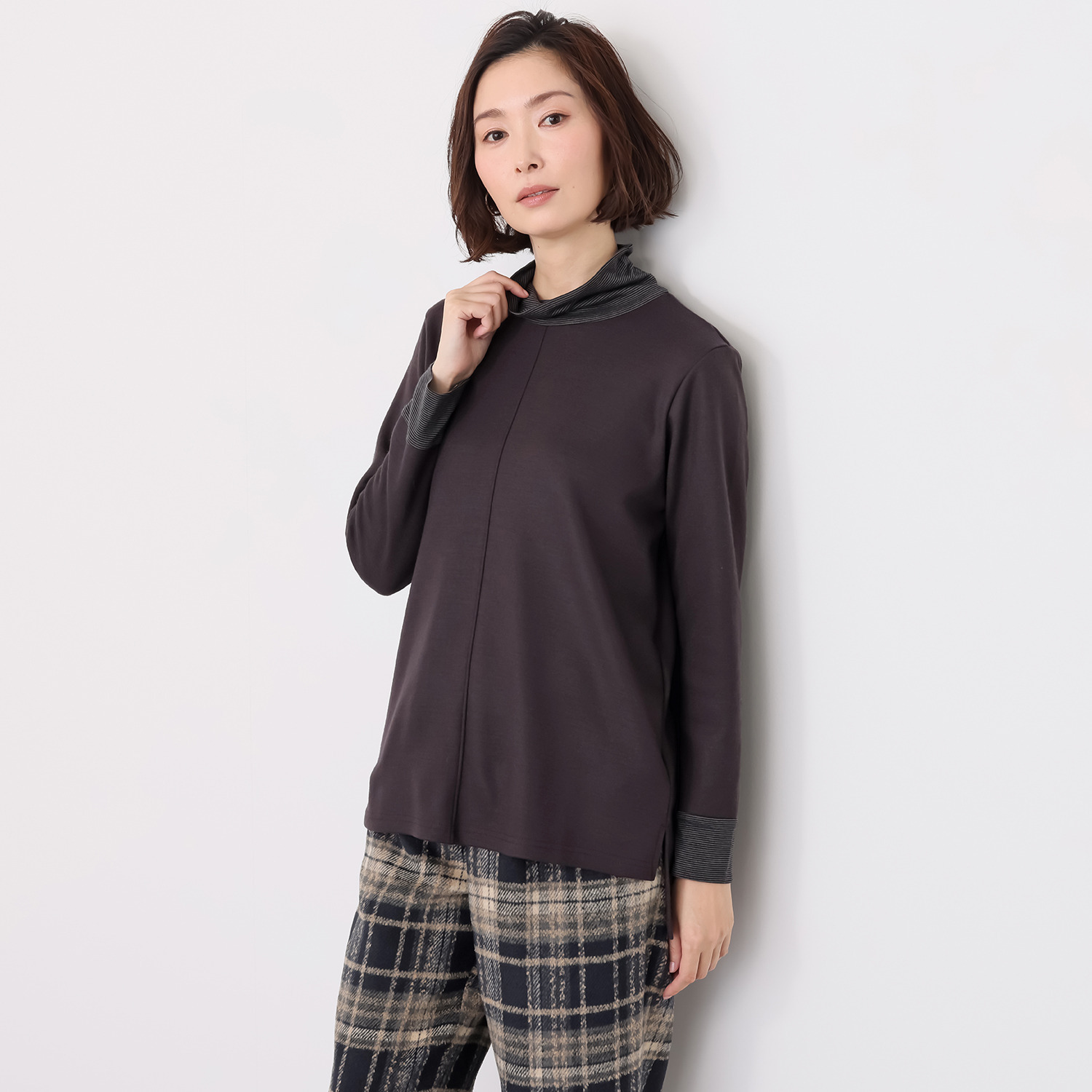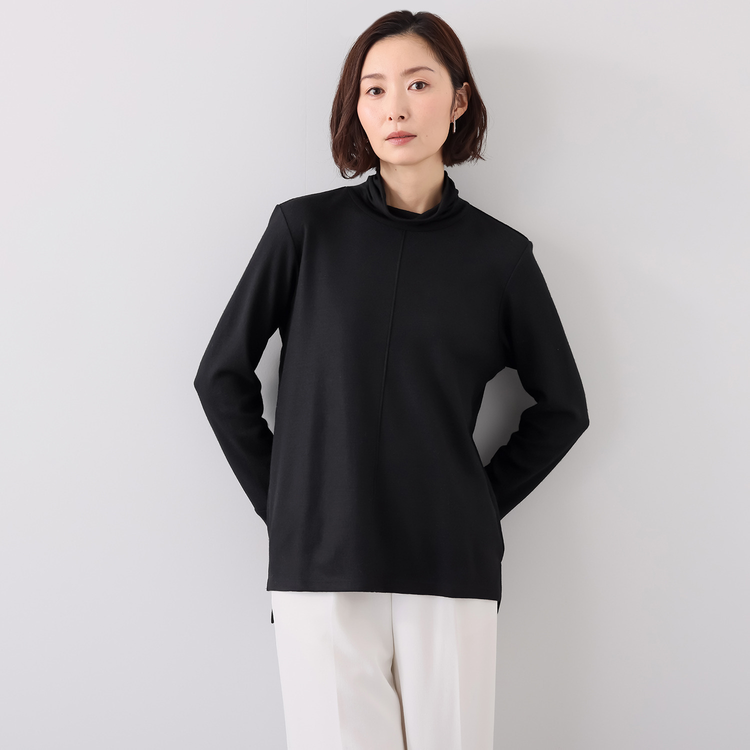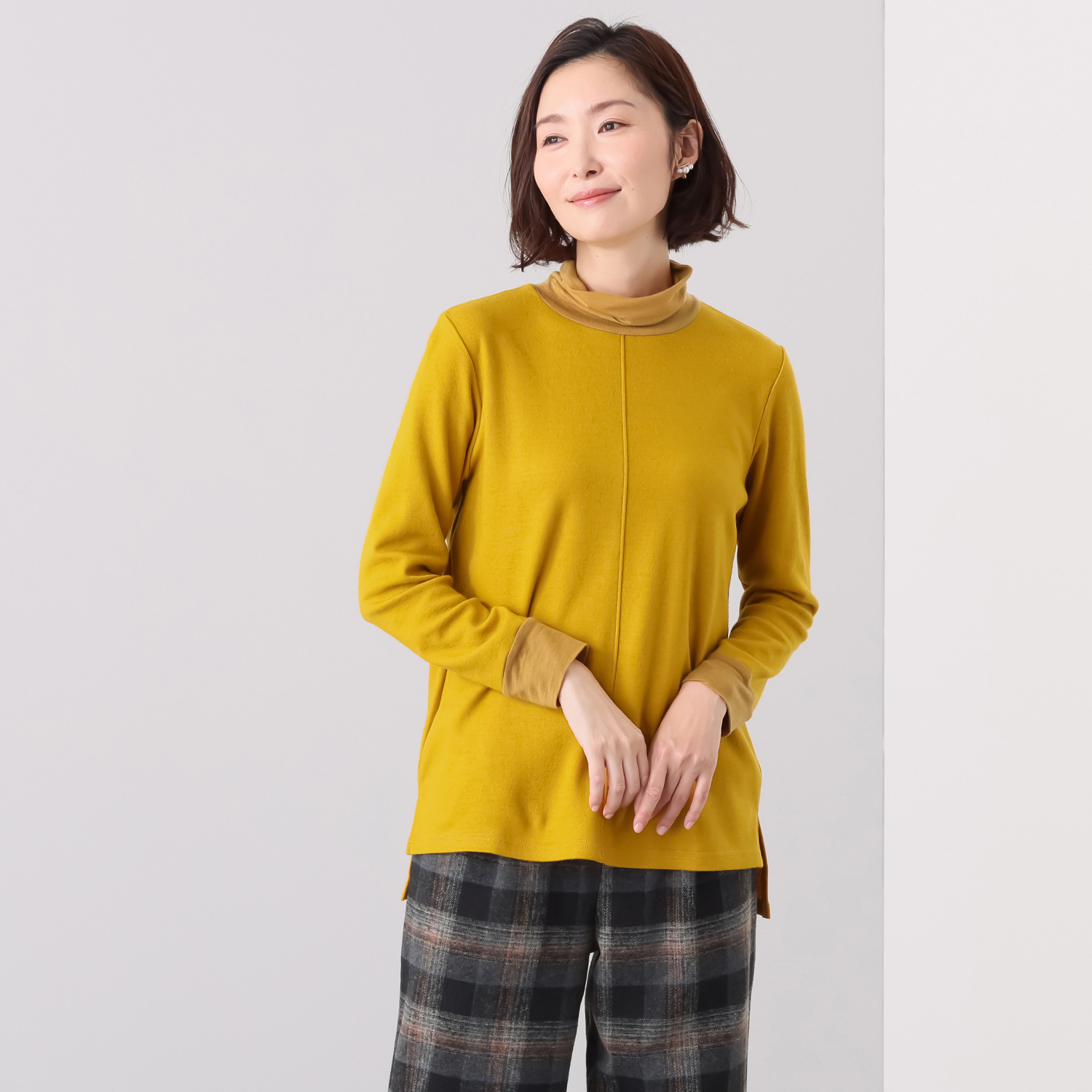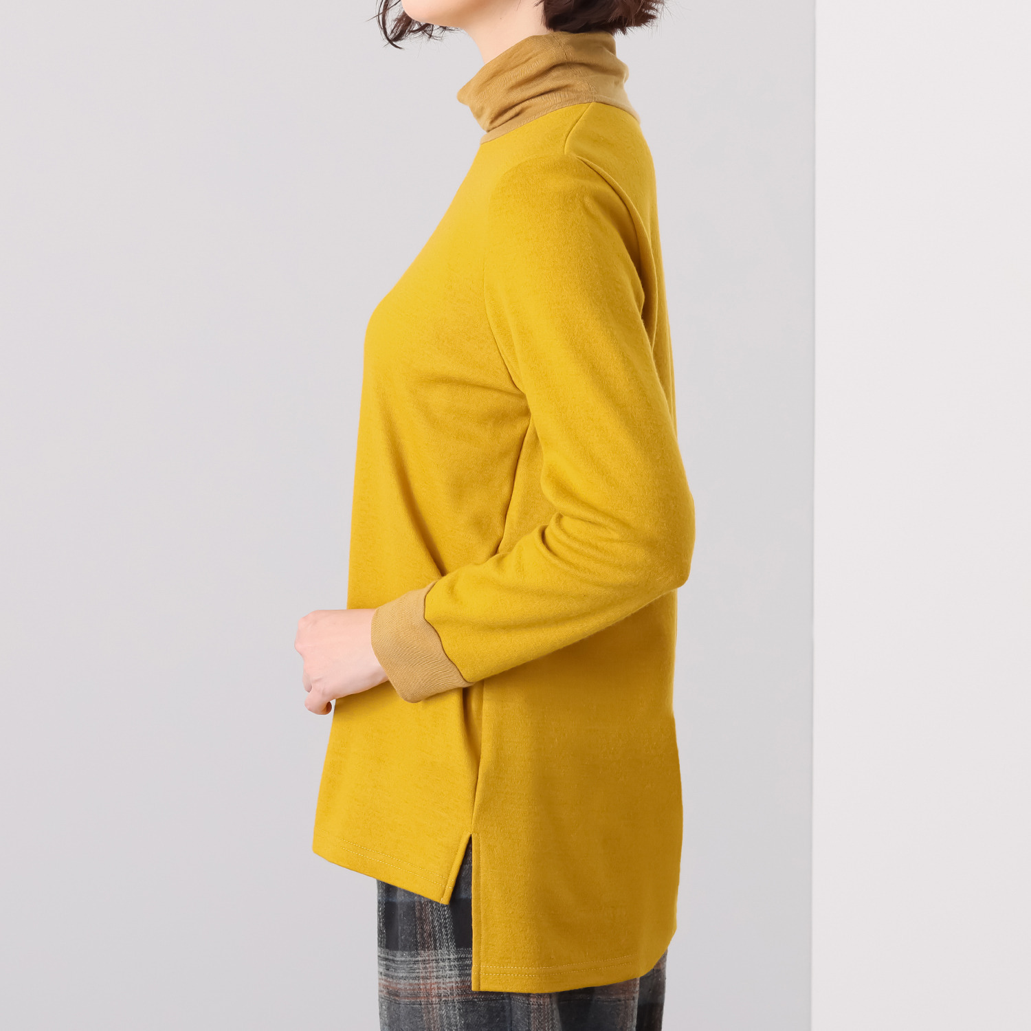 タートルネック部分は程良いゆとりを持たせ、リラックス感のある着心地を実現。
