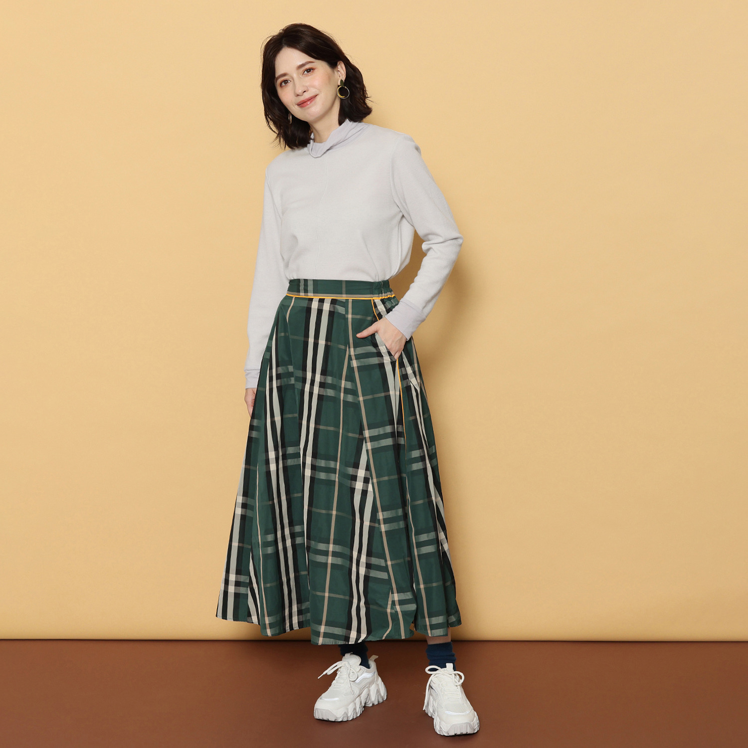前中心の縦ラインがすっきりと見せ、サイドスリットが動きやすさをプラスしてくれます。