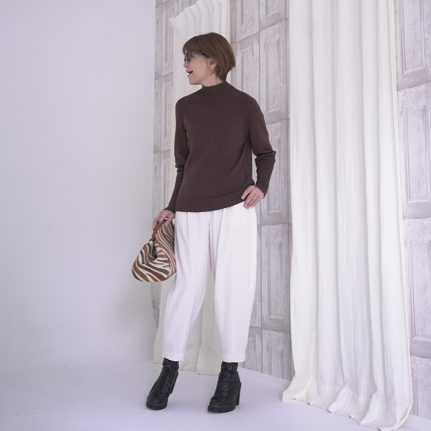 さらに、襟や袖口、裾部分もワイドリブで切り替え、立体的にデザインしています。