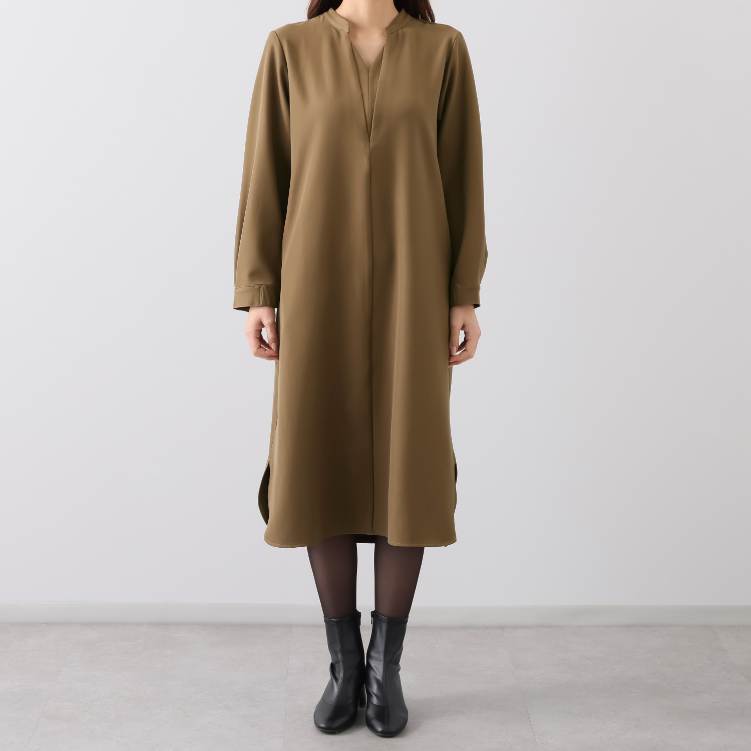 前中心に接ぎを入れることで、縦のラインを強調してすっきり見えを叶えます。