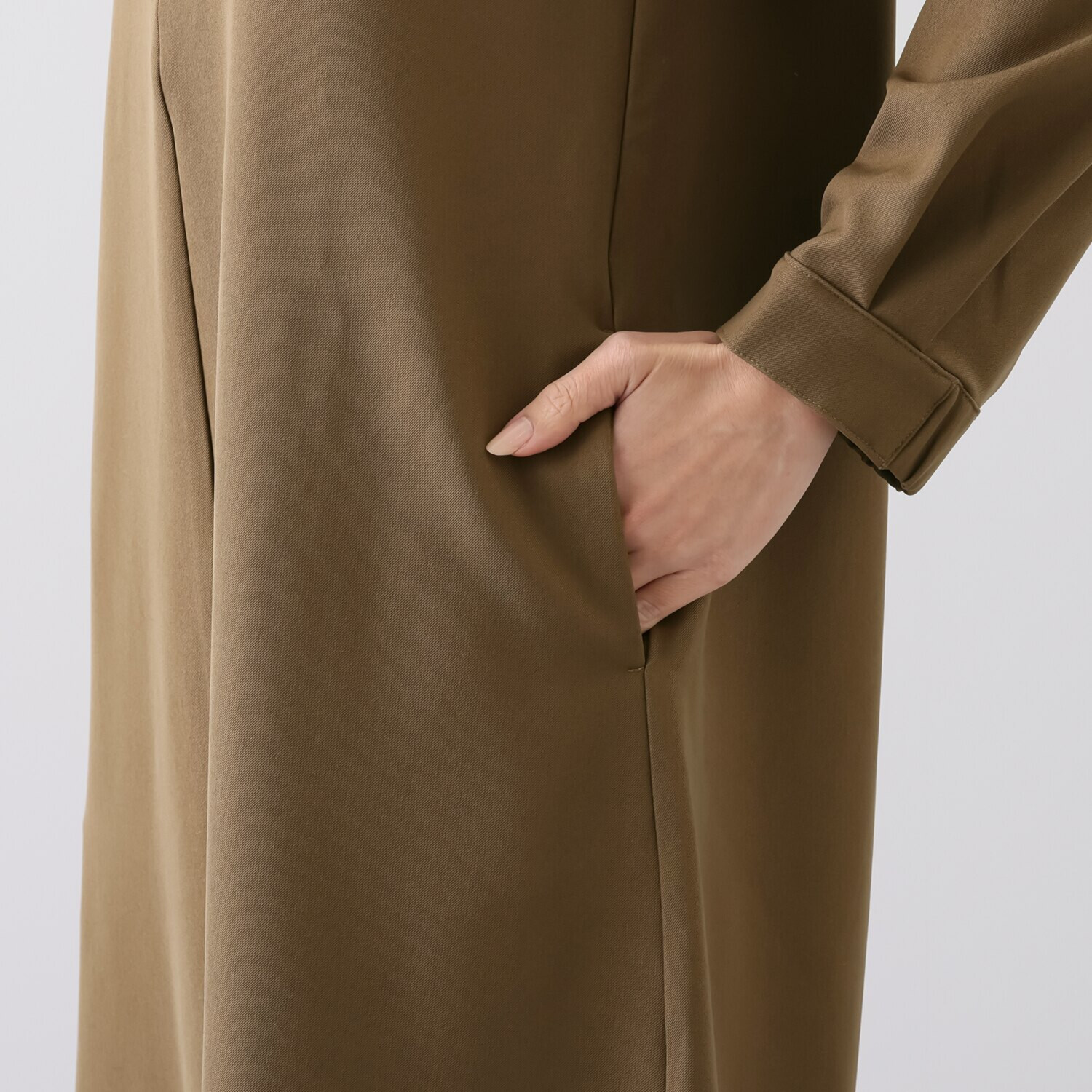 上品なツヤ感と美しいドレープが魅力のストレッチジョーゼットを採用。