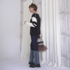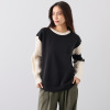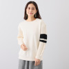 すっきりとしてシンプルなラウンドネックは、ワイドリブ仕立てにすることでさらに異素材感を演出。