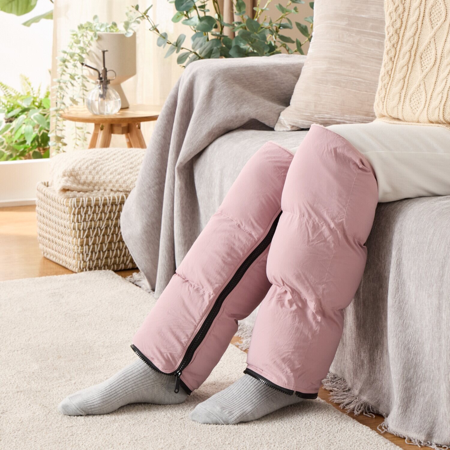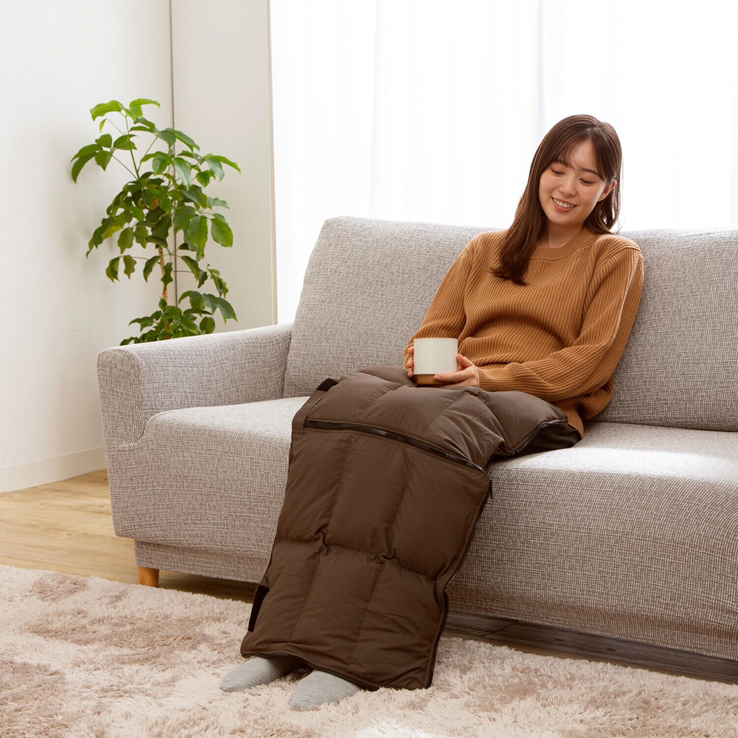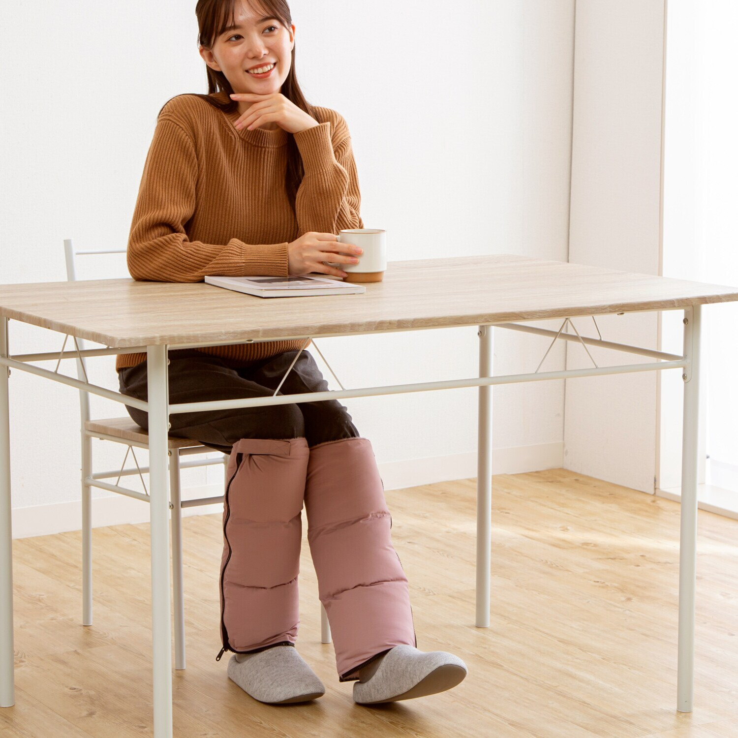さらに、足先まで覆う保温ソックスや両足のレッグウォーマー同士を繋げることでひざ掛け、座布団としても使える多機能な仕様です。