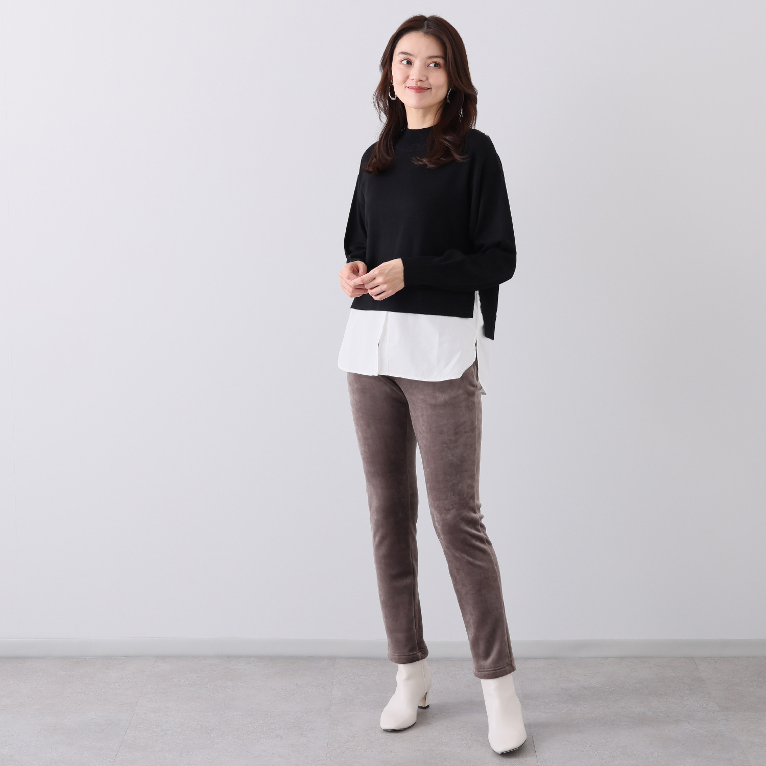 この感じのパンツで、ホントに外ばきできるパンツに出会ったことがなかったのですが、これはデキます。長いアウターで隠さなくても大丈夫。いわゆるパンツ、として履けます。普通の丈のセーターとかでOKです。