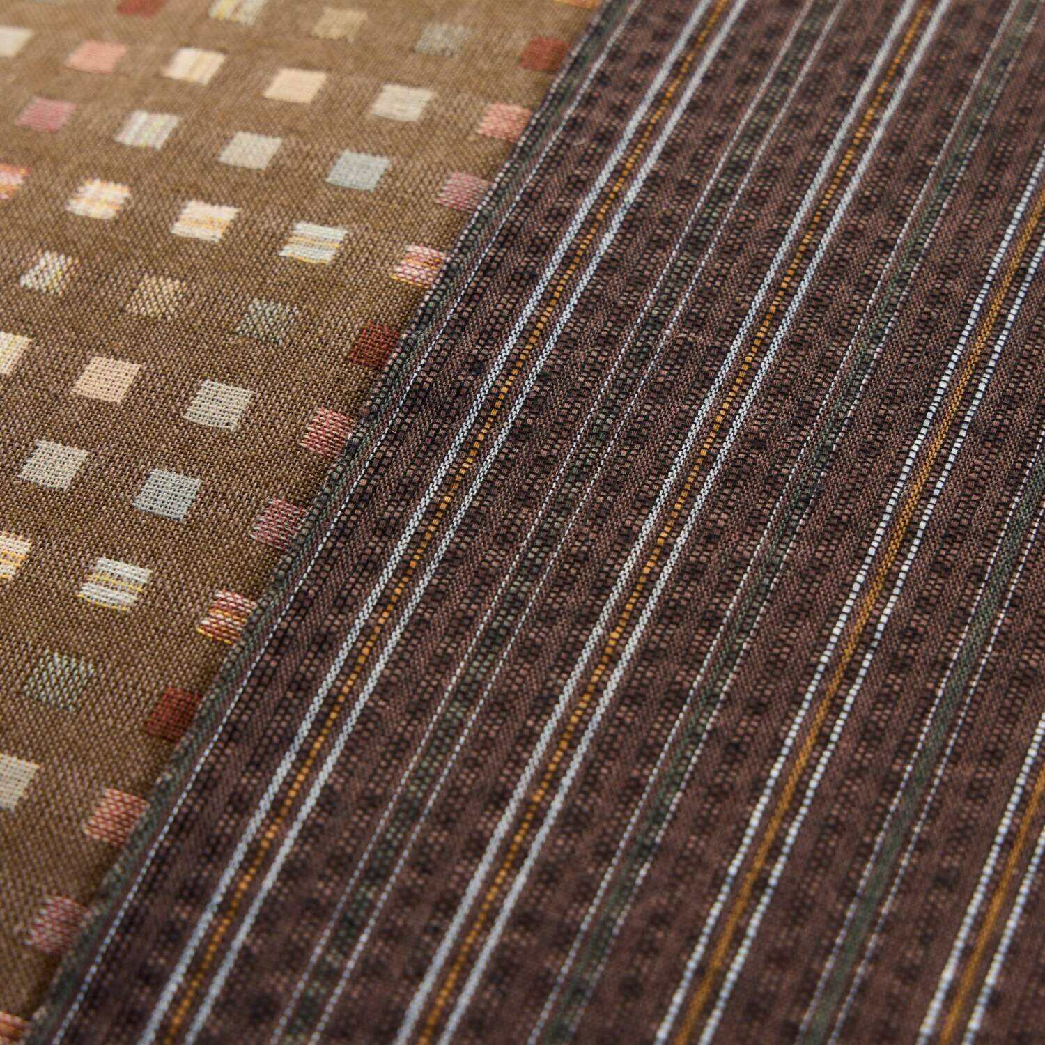 はじめはブラウン二枚と思いましたがとりどりにしました。とても品よくブラックは上面の縞模様のところだけで、裏はグレイです。店頭でなかなか気に入るものがなく、イケヒコの座布団にして、正解でした。ブラックは錯覚か深い濃紺に思えます。丁寧な梱包でした。