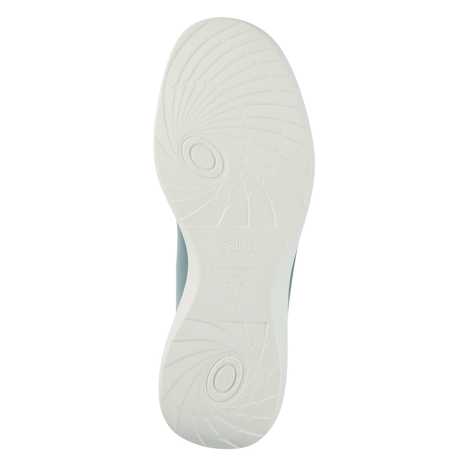 履き口の内側に配した隠しゴムが歩行の動きに合わせて伸縮し、足にしっかりフィット。