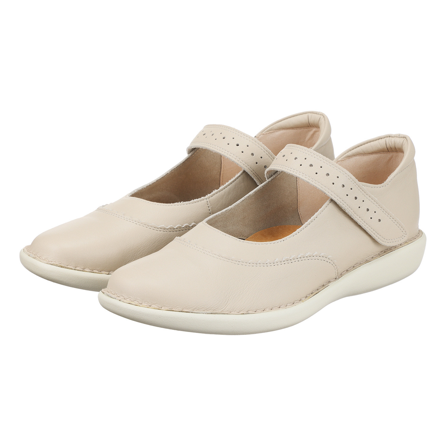 全体的に丸みのある女性らしいデザインが特徴で、柔らかな牛革がやさしく足を包み込みます。