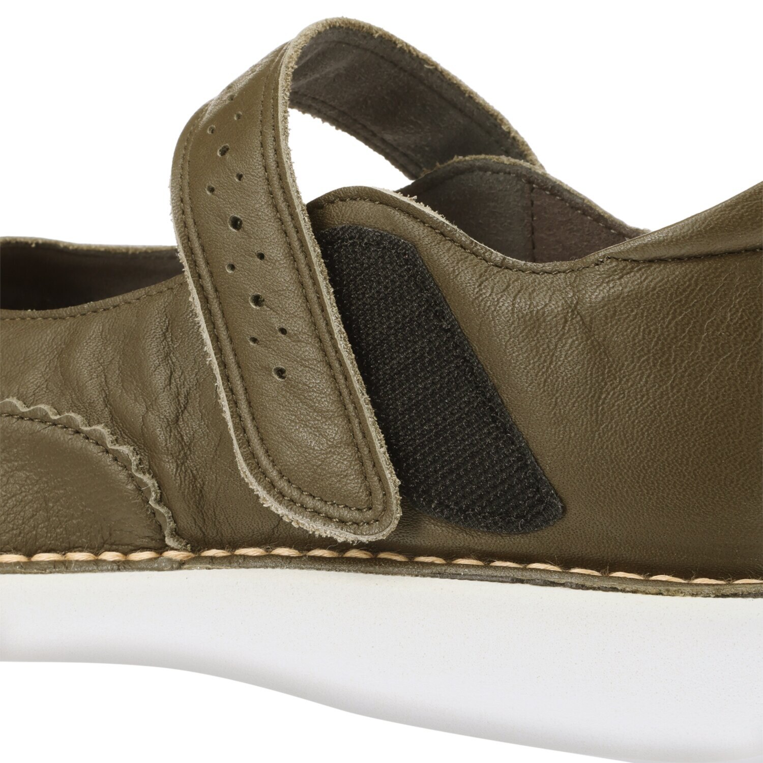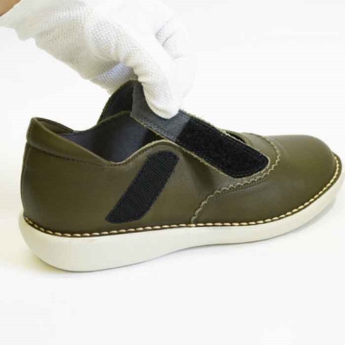 ストラップの面ファスナーを外せば履き口が広がり、着脱が簡単です。