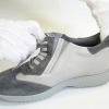 履き口の両サイドに配された隠しゴムが足にしっかりフィットして、歩きやすい構造です。