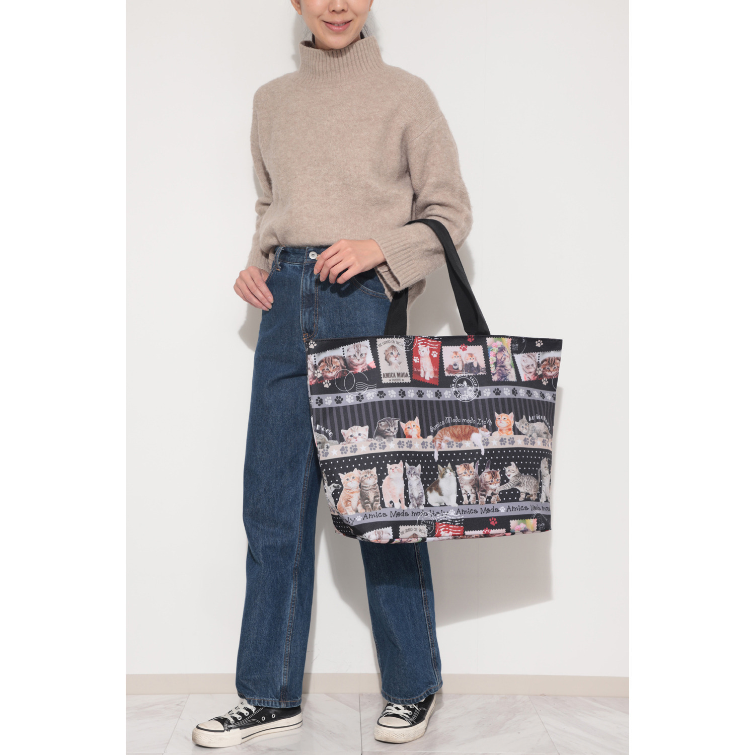 ラルジュ キャットスタンプボーダー ビッグトートバッグ