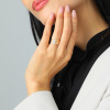 中心に向かって広がっていくデザインは、程良くボリューム感がありながらも、CZの面を1段下げることで出っ張り感を軽減。