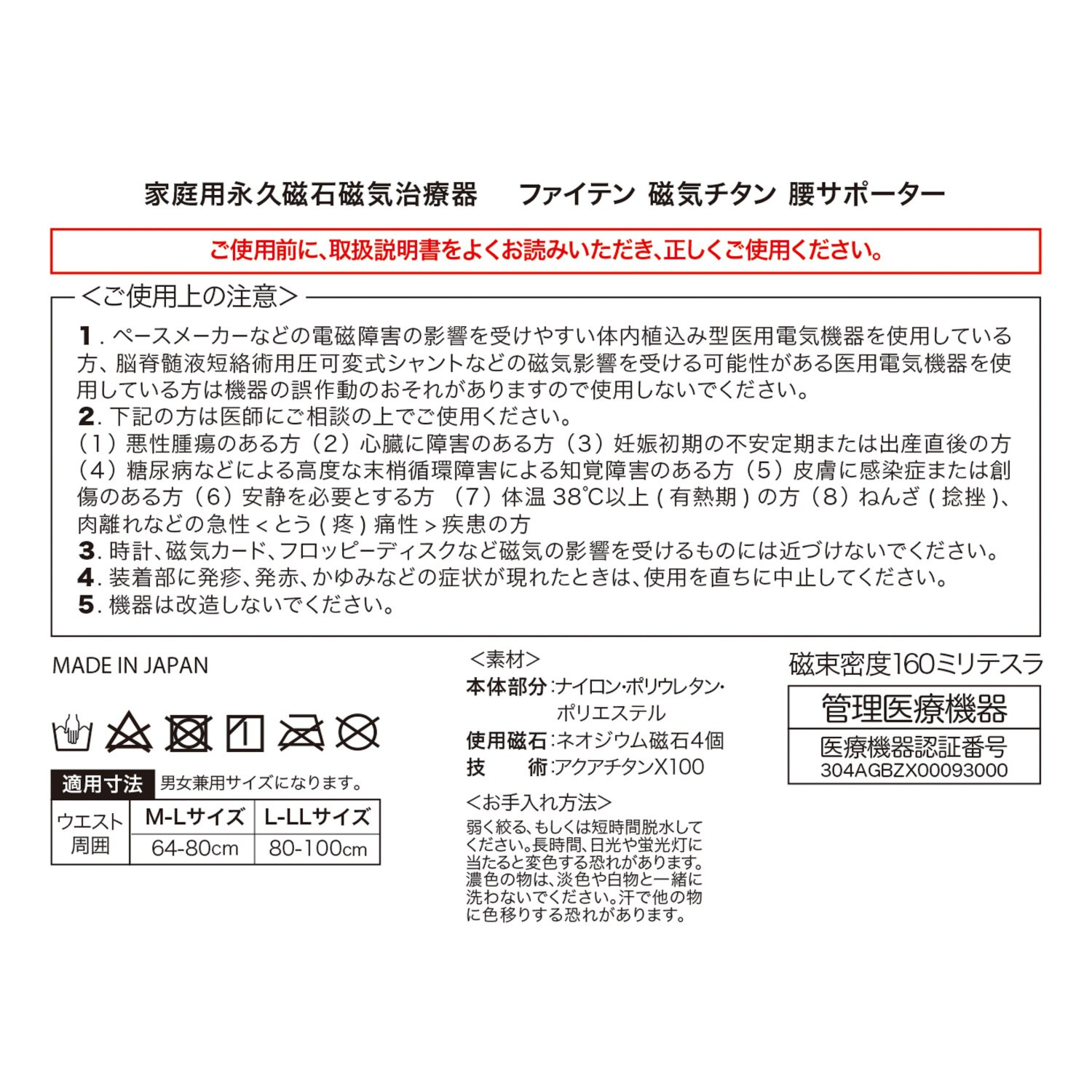 <ファイテン>より、装着部位のこり及び血行の改善の効果がある管理医療機器(家庭用永久磁石磁気治療器)「磁気治療腰サポーター(ファイテン 磁気チタン 腰サポーター)」です。