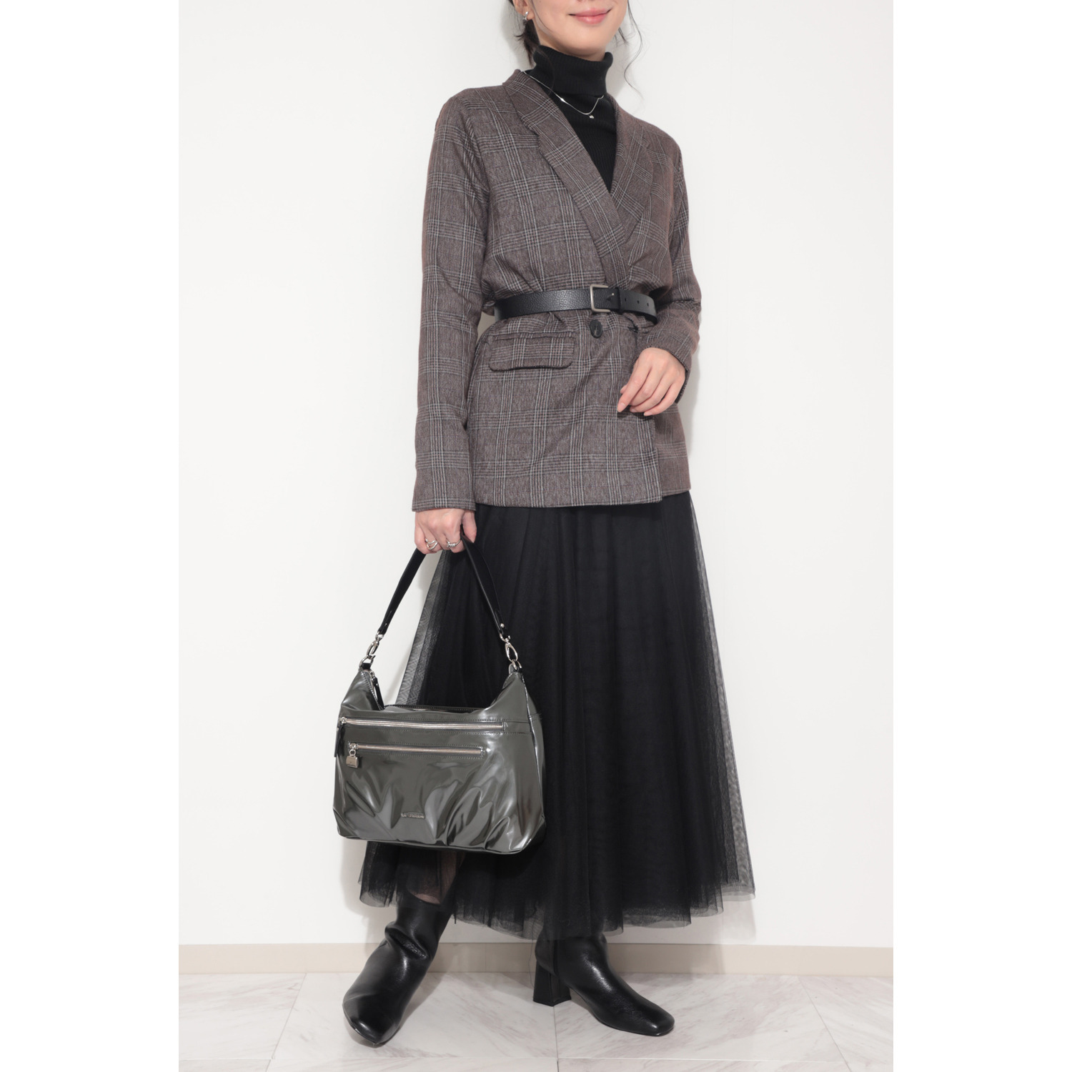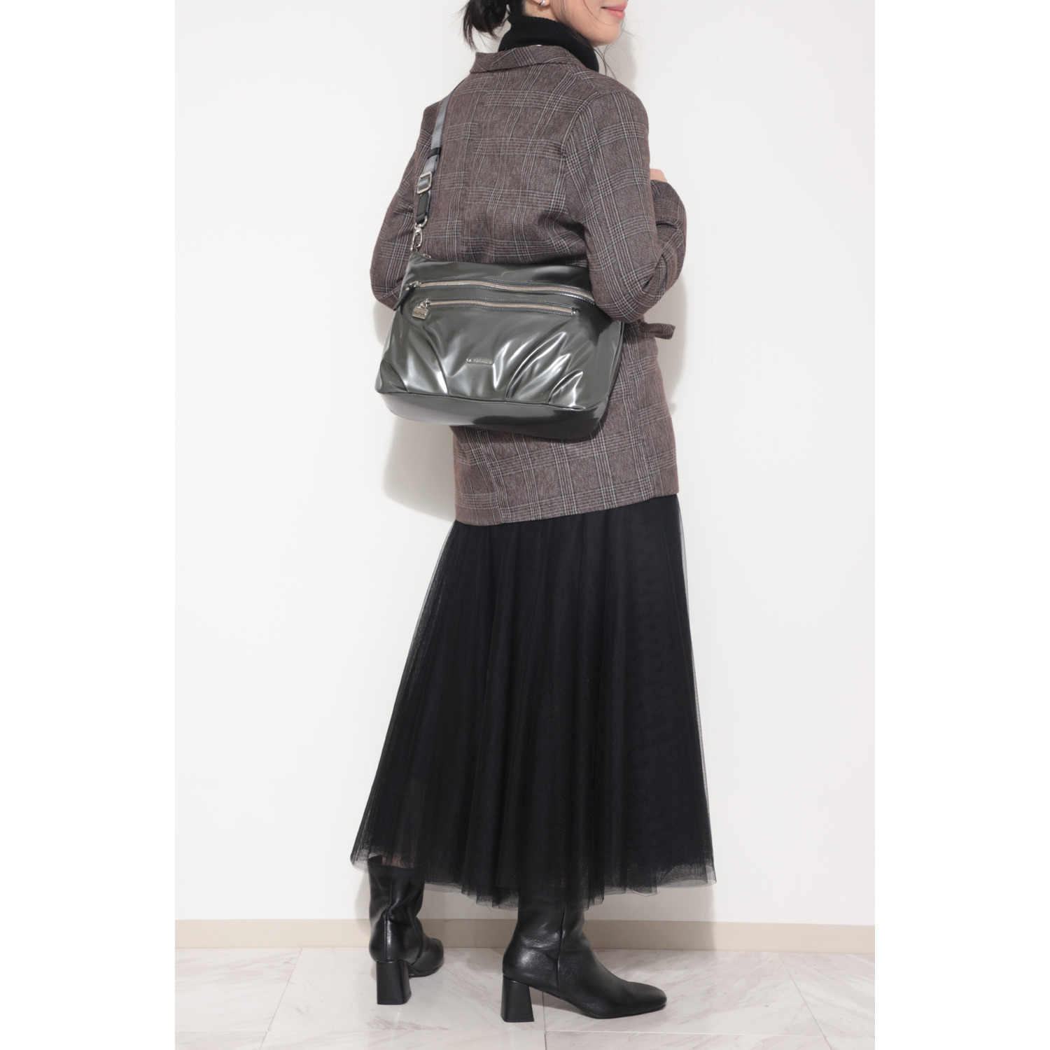 短い方のストラップは肩に掛けれます。