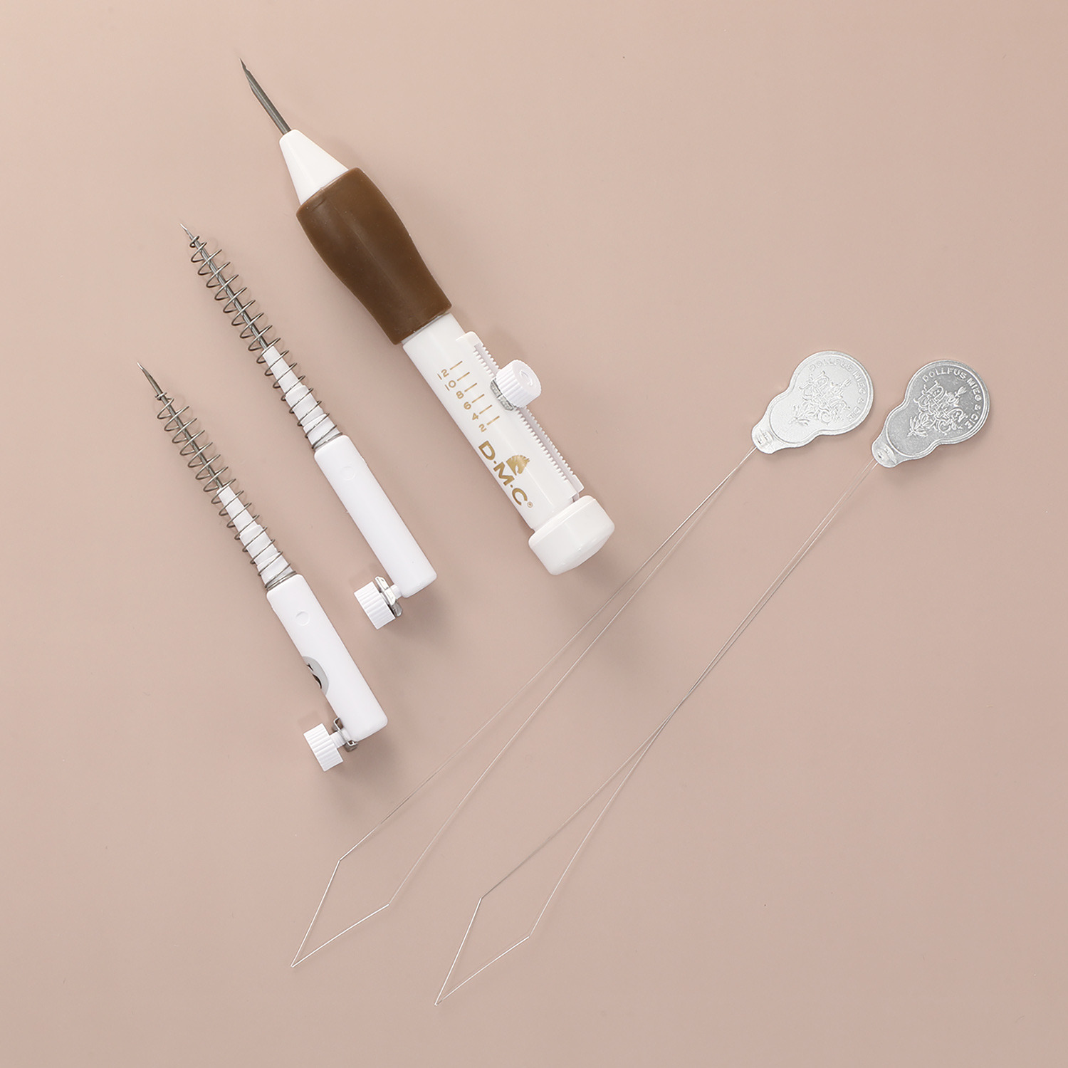 ・パンチニードルペン本体、針×3(S、M、L※本体にセット済 各1本)、糸通し×2