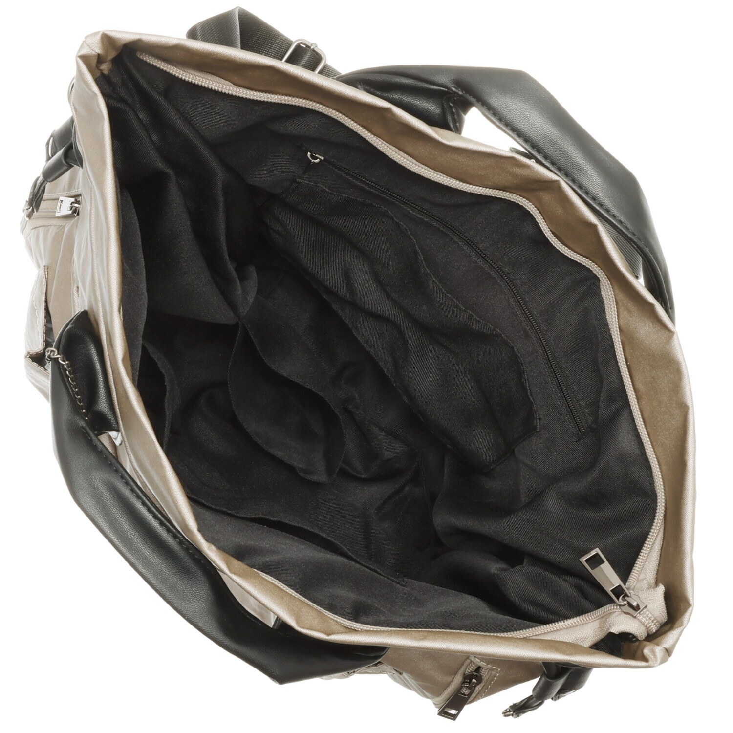 外にファスナーのポケットが3個も付いていますがすべて縦ファスナーで奥行きが17・位で長財布や最近では出し入れが多い折りたたみ傘が入りません