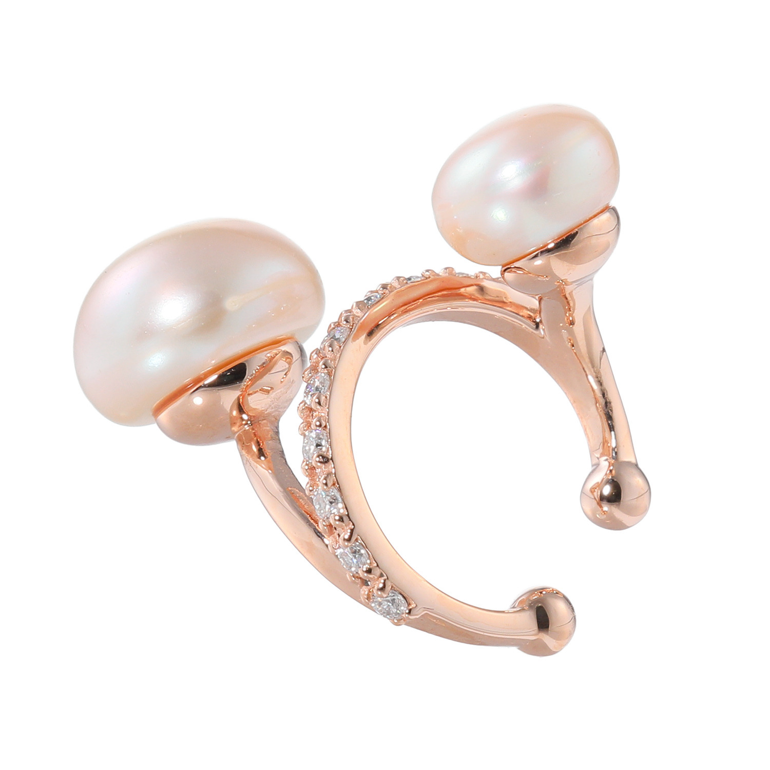身に着けると、果実のようなピンクカラーの淡水パールが耳に沿って浮いているように見え、華やかな雰囲気を醸し出します。