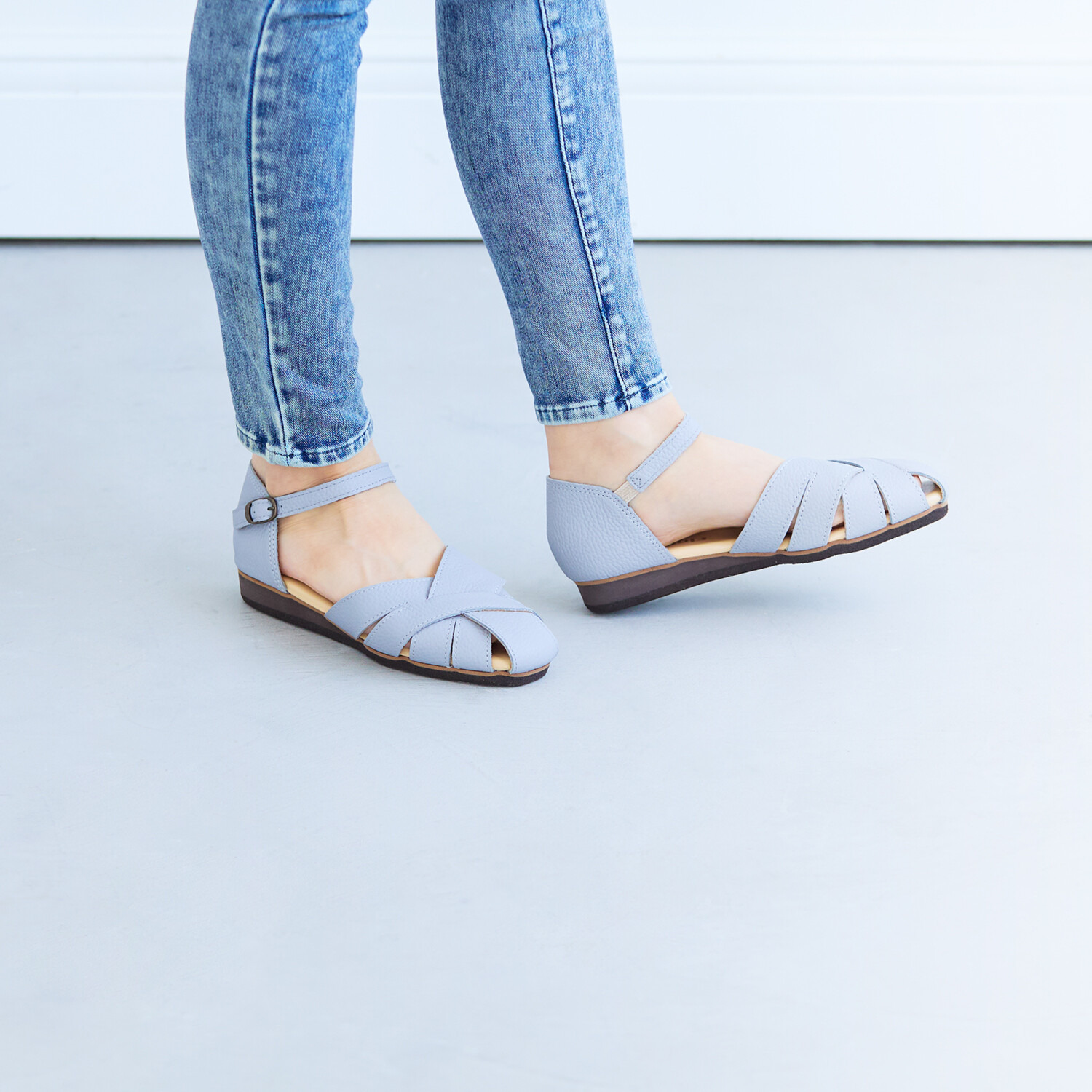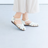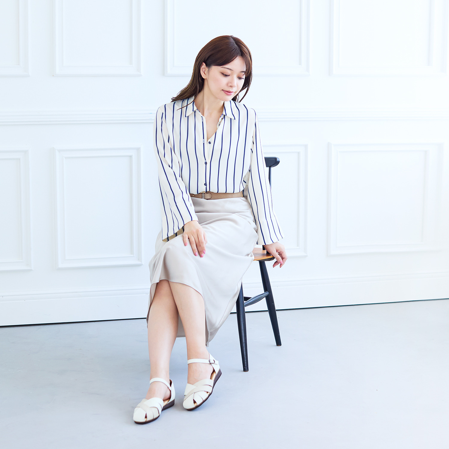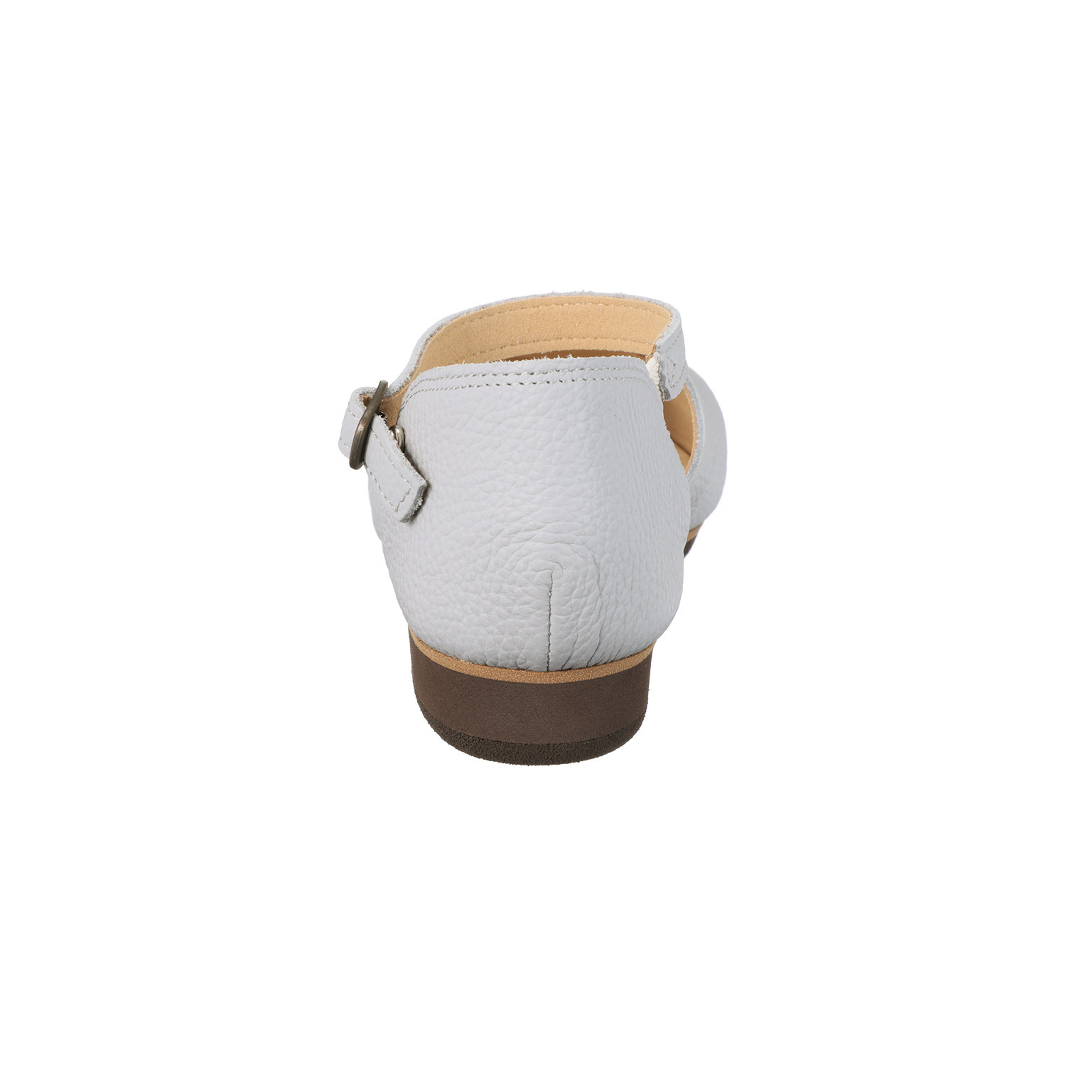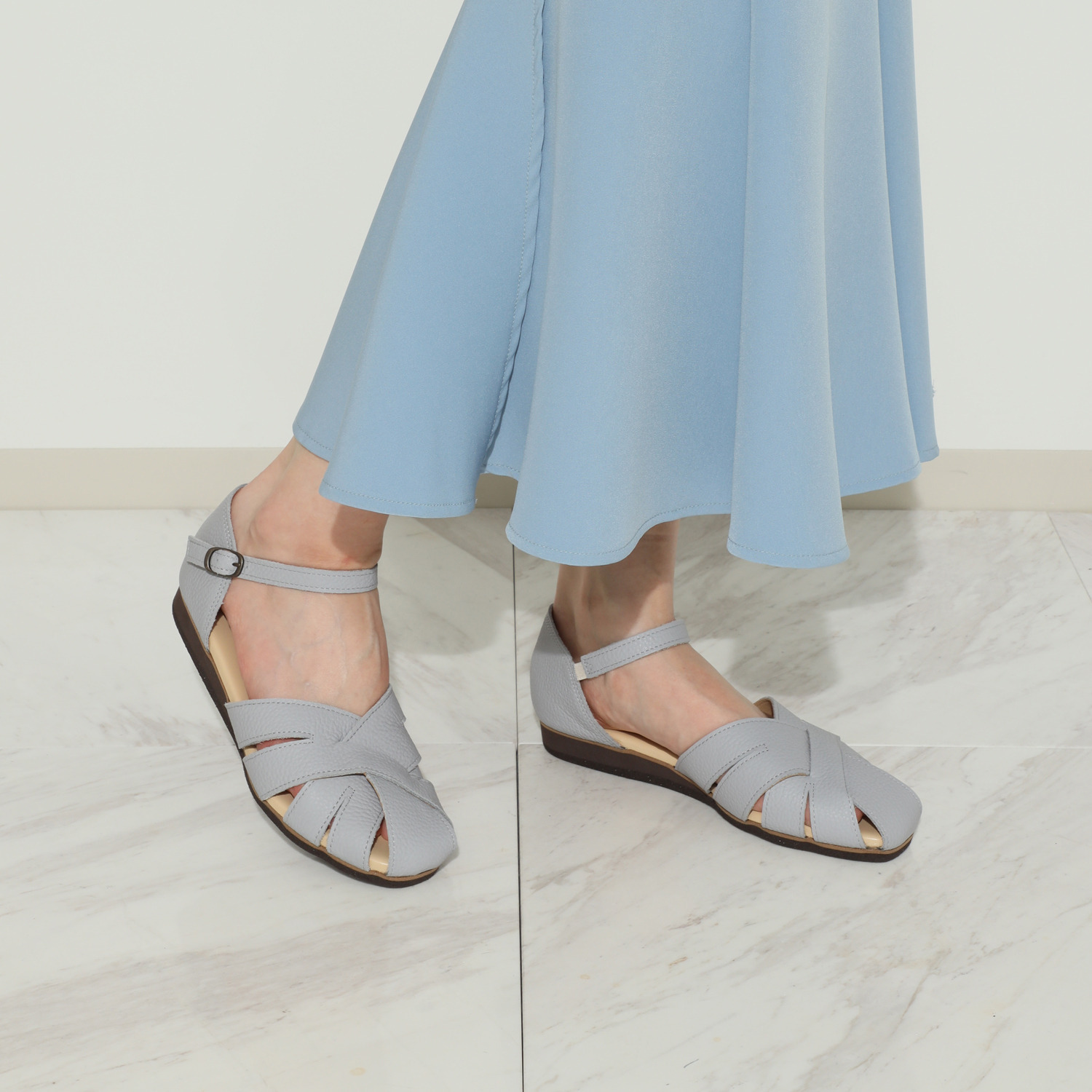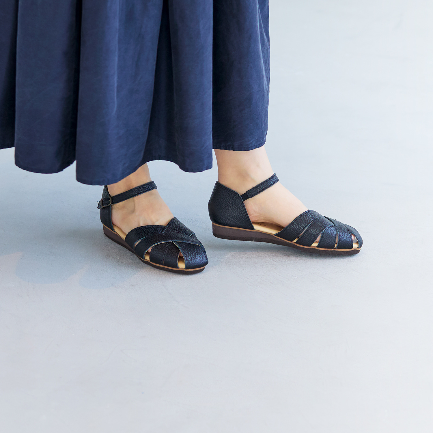 やや厚みがありながら柔らかな革が自然に足になじみ、素足でもやさしいはき心地が特徴です。