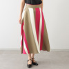 大胆な斜めボーダーが視線を集める上品な存在感。動くたびに美しく揺れるフレアーなシルエットが魅力。