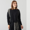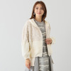 ドット柄ニットと花柄ジャガードの絶妙な融合。ゆったりシルエットで動きやすさと洗練された雰囲気を両立。