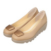 ヒルズアヴェニュー <日本製> レザー フラワーモティーフ ウェーブソールパンプス