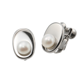 エアリーフェアリー ステンレス 淡水ボタンパール オーバルモティーフ イヤリング/ピアス