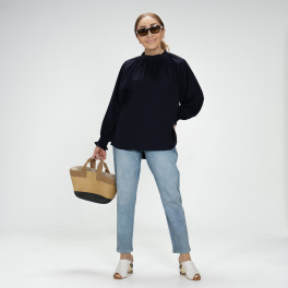 美しい光沢感とシボ感が醸す上質な存在感。華やかな印象と心地良い肌触りで季節の変わり目も快適に。