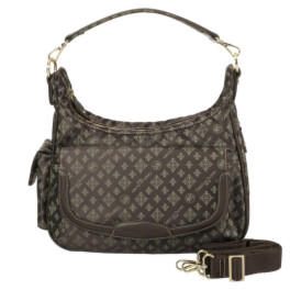 はっ水性のあるモノグラム柄生地がエレガント。使い勝手の良い、縦型フォルムもポイント。