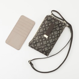 上品なモノグラム柄ジャガードがエレガントな佇まい。お財布機能を備えており、スマートなお出かけを実現。