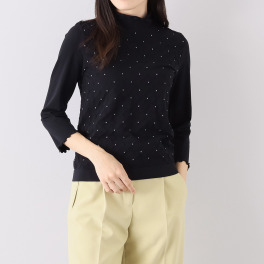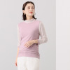 ドルチェ ドンナ イタリア製 ストレッチレーススリーブ サイドギャザー ラウンドネック プルオーバー