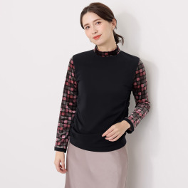 肌触りが良く、伸縮性に富んだ快適な着心地と上品なデザイン。レース袖が洗練された大人の装いを演出。