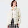 デニムとツイードの絶妙なハーモニー。モードなボタン使いで、洗練された印象を演出します。