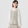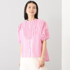 スタイル・ラヴィー バンドカラー 袖シャーリング カフスアクセント チュニックブラウス
