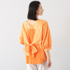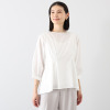 袖シャーリングカフスがエレガント。すっきりとした前身頃と動きのある後ろ姿で、美しいシルエットを演出。