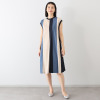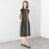 微光沢が華やかさを添える上品な幾何学柄プリント。さらにフレアーシルエットで女性らしさを引き立てます。