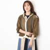スタイル・ラヴィー ワッペン風ロゴ& 配色ラインアクセント ドローストリング付 スタンドカラー ニッ…