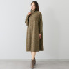 シルバーミントシュガー ゆったりシルエットと ほっそり袖でメリハリ オフタートル ワンピース