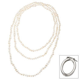 しっとり艶めく白蝶パールの気品。程良い存在感が、胸元に洗練された印象を添える。