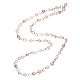 ペレフェリーク 淡水パール ブロッサムマルチカラー メタリック ステーション ロングネックレス
