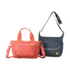 本体表地にはっ水加工をほどこした素材を使用。手持ちと斜め掛け・肩掛けが可能な2ウェイデザイン。